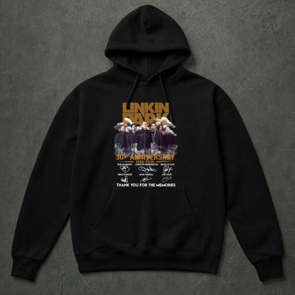 This design commemorates the 30th anniversary of Linkin Park, celebrating a band that has profoundly influenced the rock genre. The bold typography and iconic signatures encapsulate a journey filled with passion, unity, and memories, honoring Chester Bennington and the collective experiences of fans. It’s a tribute that resonates deeply, inviting wearers to reflect on the soundtrack of their lives.