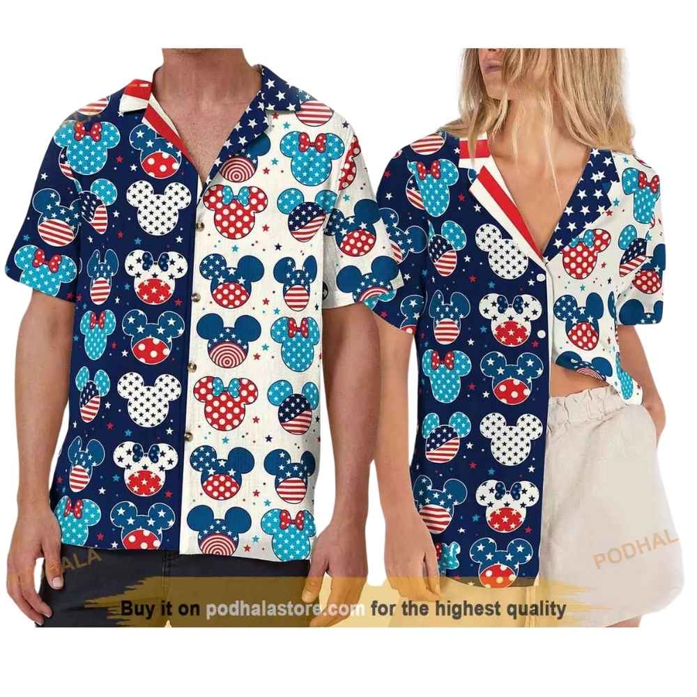 Celebrate the 4th of July in style with this festive Mickey Mouse pattern Hawaiian shirt. Perfect for adding a touch of Disney magic to your holiday festivities.