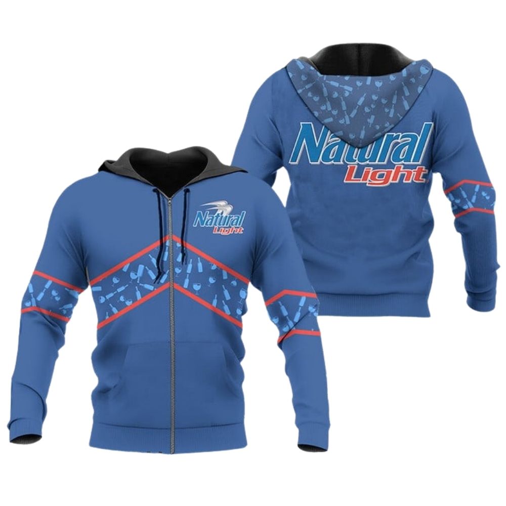 Discover the perfect blend of style and comfort with this Natural Light Beer Blue Wine Pattern All Over Print Hoodie. Stay cozy and stand out in this unique and eye-catching design that is sure to turn heads. Perfect for casual outings or lounging at home, this hoodie is a must-have addition to your wardrobe.