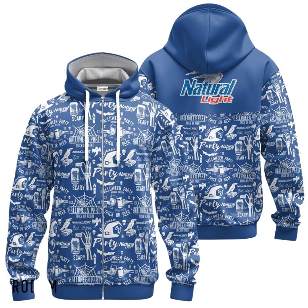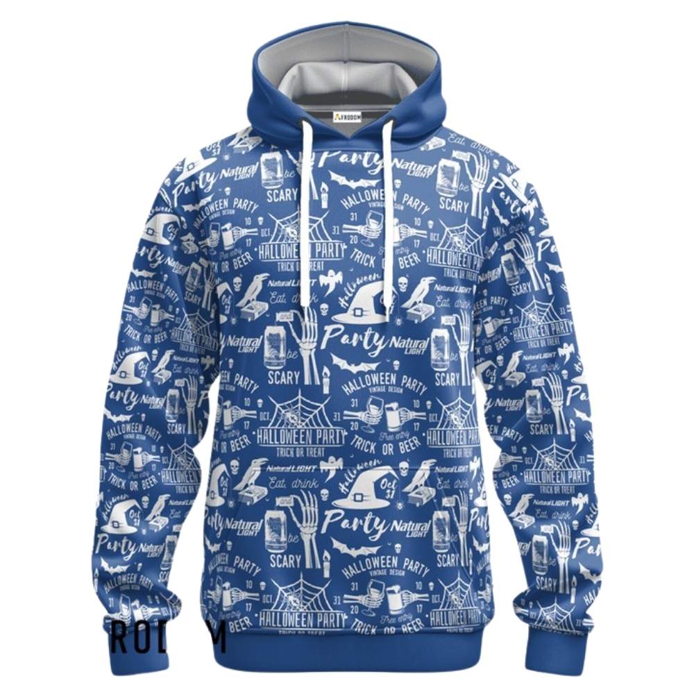 Get into the Halloween spirit with this Natural Light Blue All Over Print Hoodie featuring spooky patterns. Perfect for adding a touch of fun to your wardrobe.
