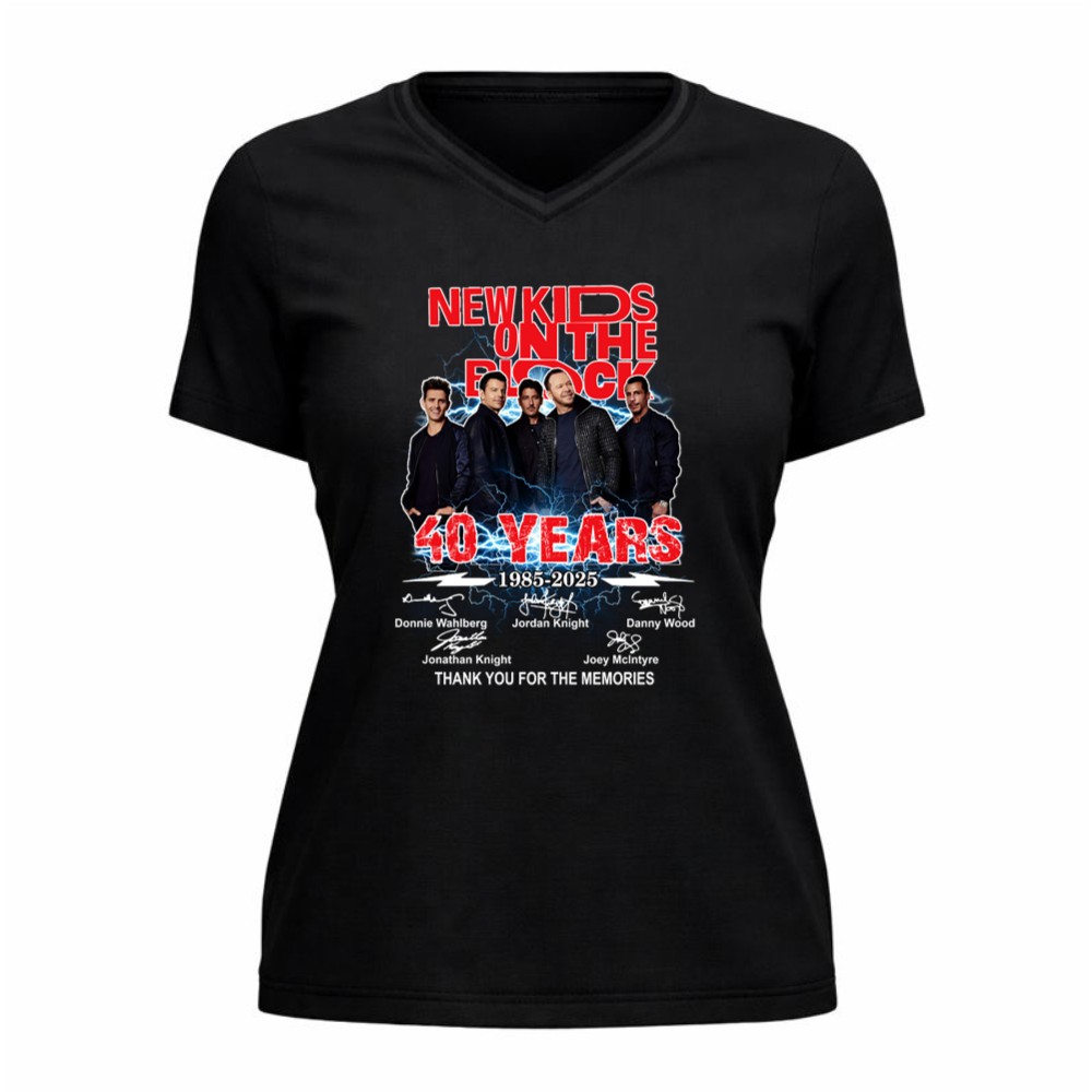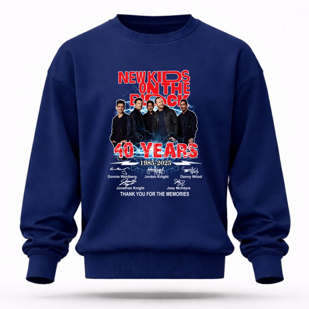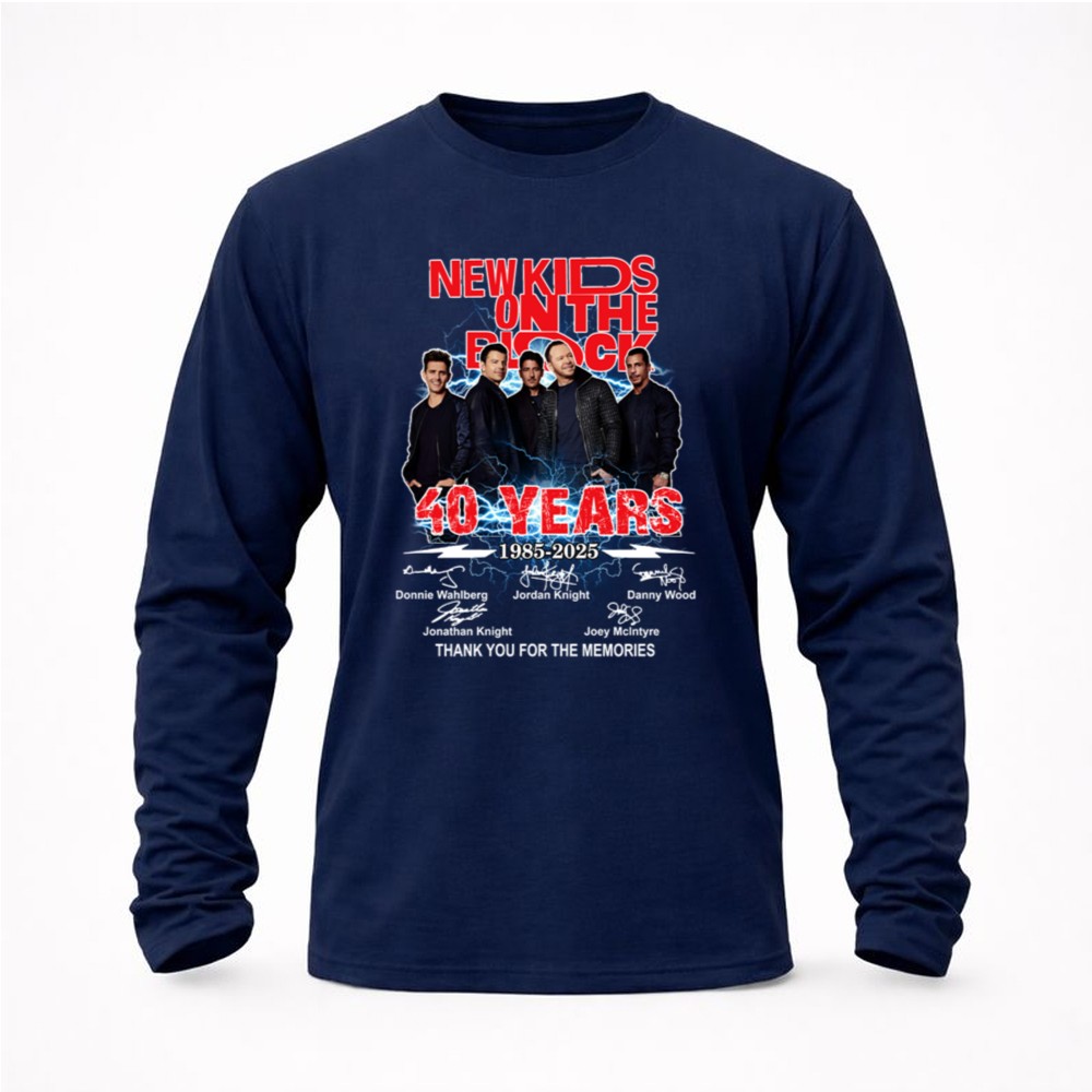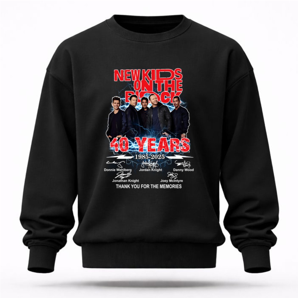 New Kids on the Block merchandise, 40th anniversary t-shirt, 1980s boy band tribute, NKOTB signatures, nostalgic concert apparel, fan memorabilia, music legends, thank you for the memories shirt