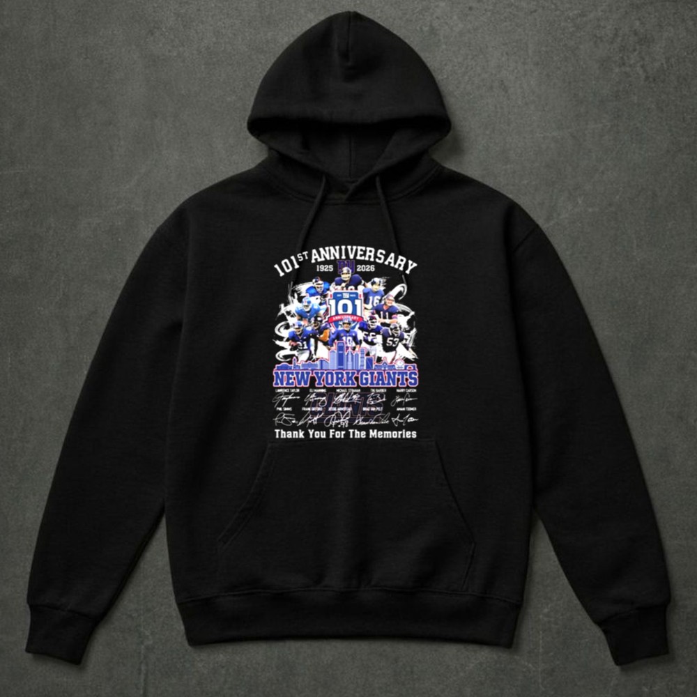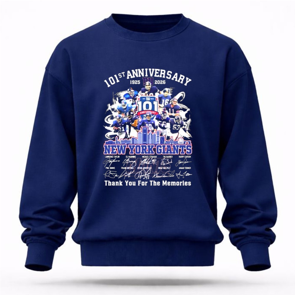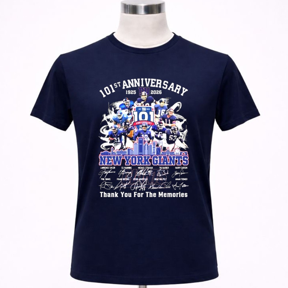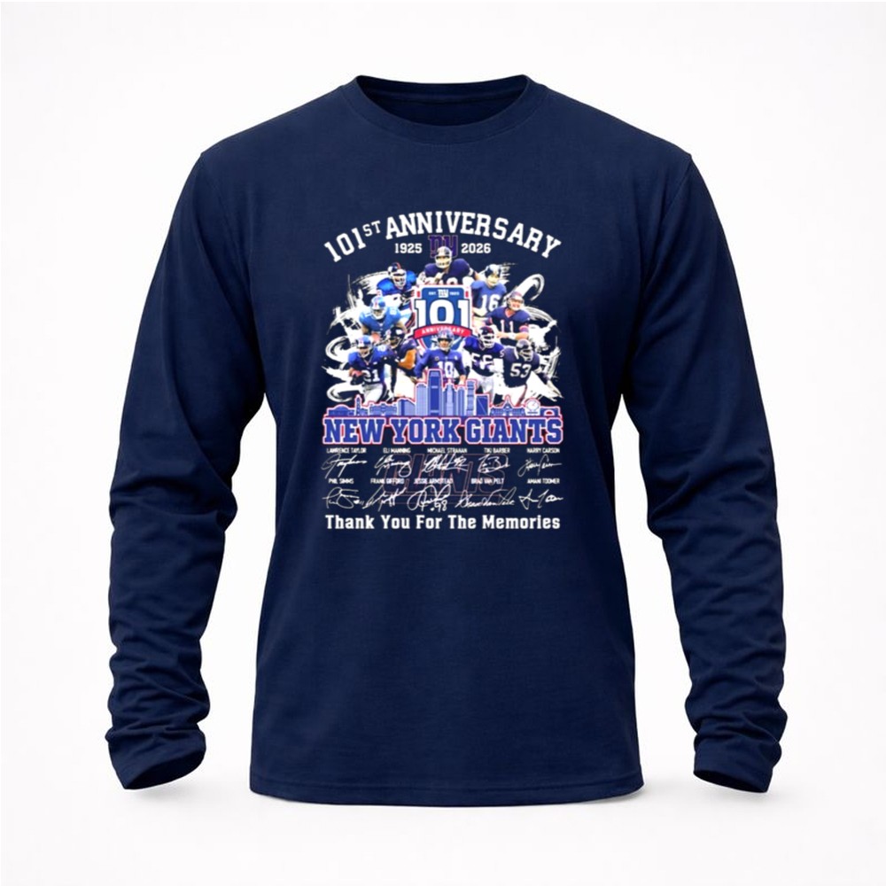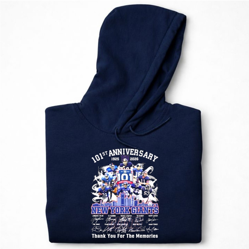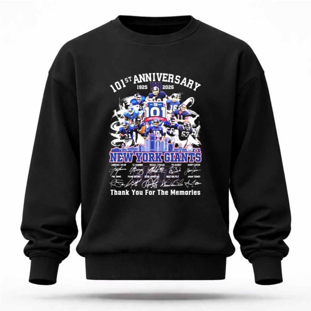 This design captures the essence of the New York Giants, celebrating their 101st anniversary with the signatures of legendary players like Lawrence Taylor and Eli Manning. The bold graphics and vintage sports art reflect a deep sense of nostalgia and pride, inviting fans to honor the unforgettable memories created at MetLife Stadium. It’s a heartfelt tribute that connects generations of Giants supporters through shared moments of triumph and unity.