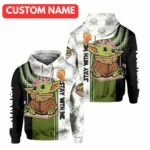 Get your hands on this adorable Personalized Baby Yoda All Over Print Hoodie and stay cozy in style. Perfect for any Star Wars fan!