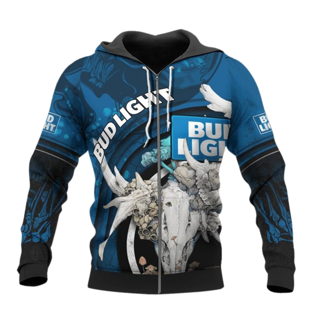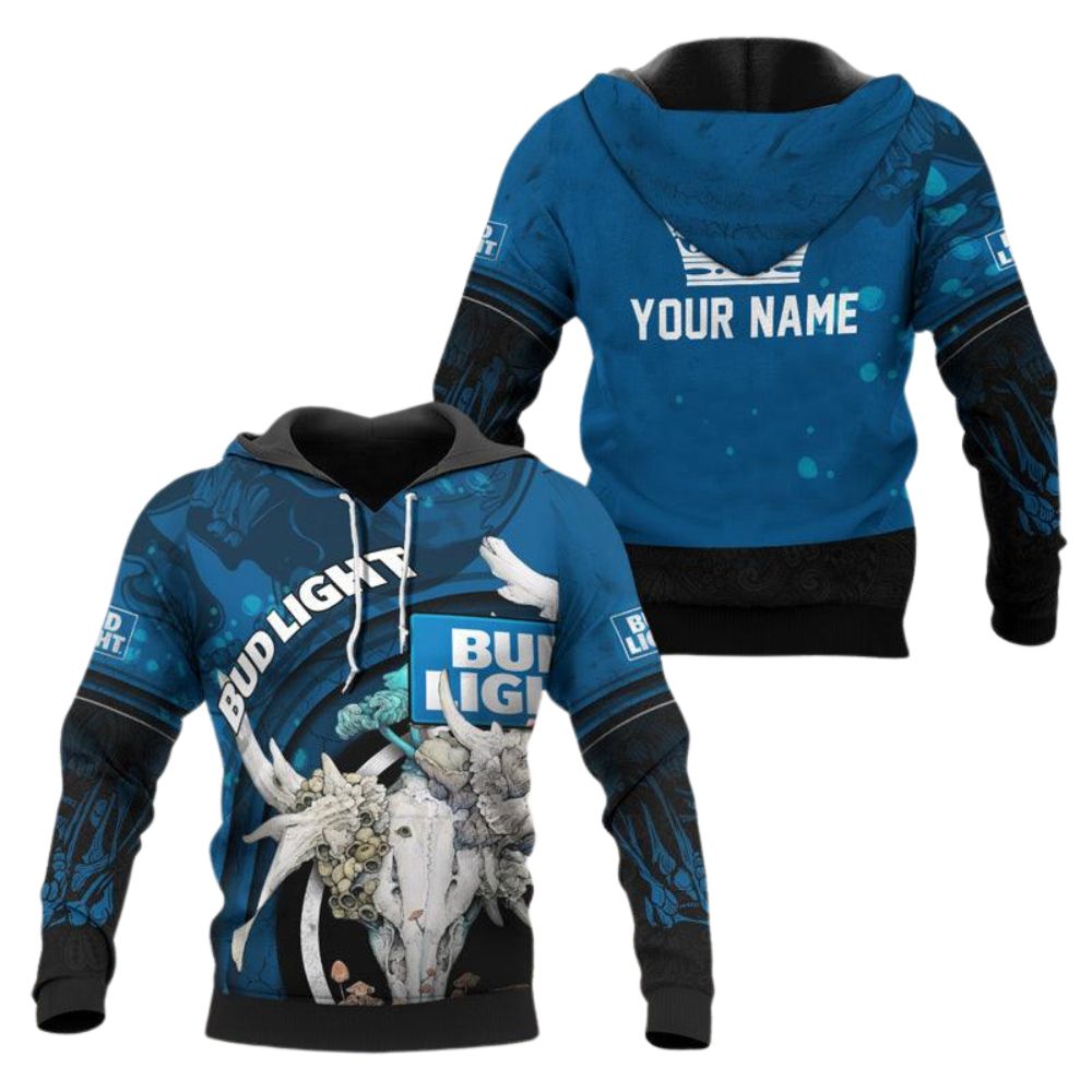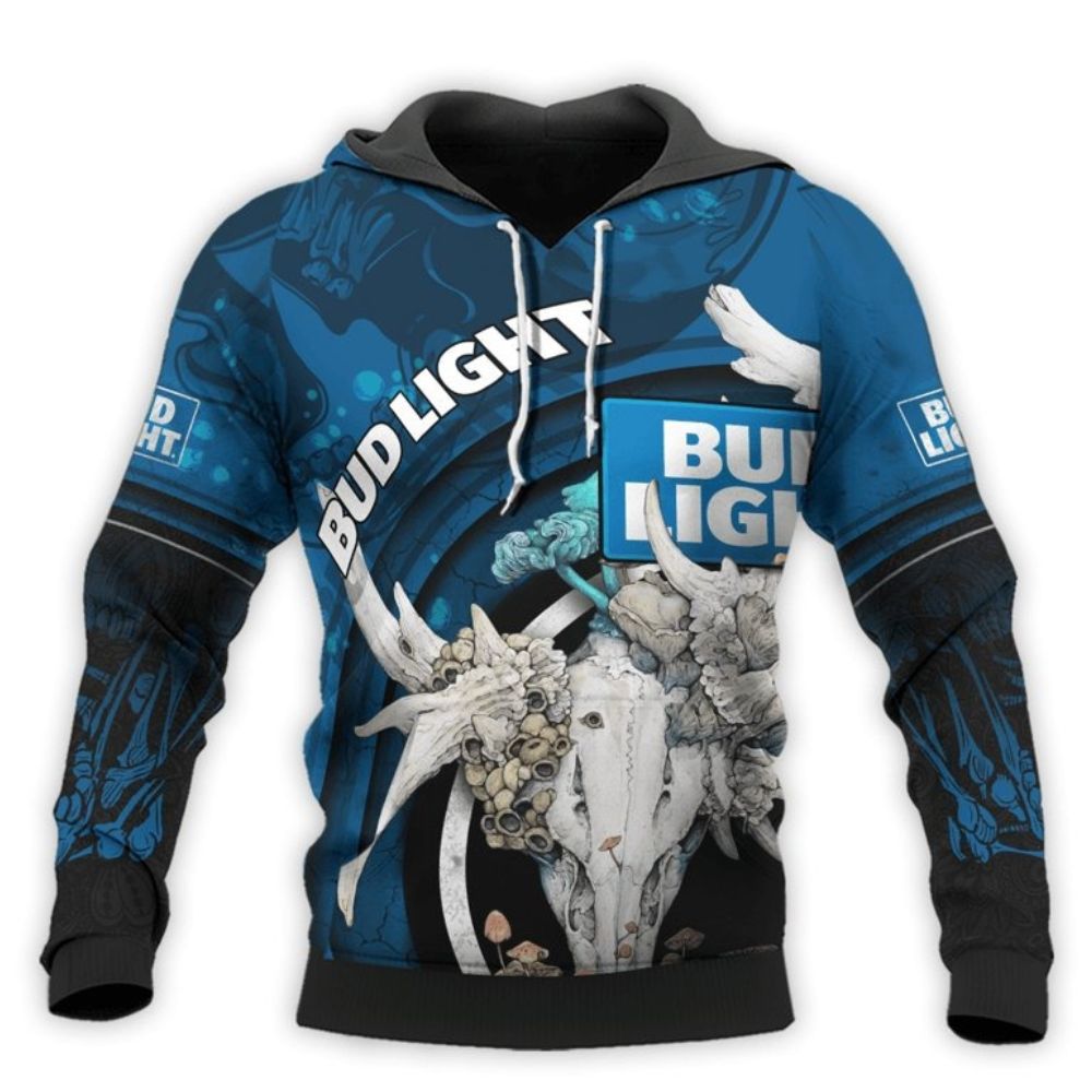 Shop the unique Personalized Bud Light Deer Skull With Mushrooms All Over Print Hoodie. Stay warm and stand out in style with this eye-catching and customizable hoodie. Perfect for adding a touch of personality to your wardrobe.