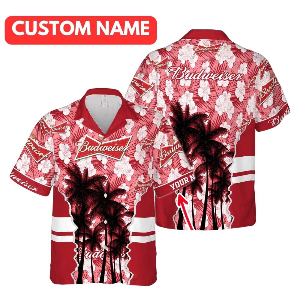 Stand out in style with this personalized Budweiser floral flower and coconuts Hawaiian shirt. Perfect for adding a unique touch to your wardrobe.