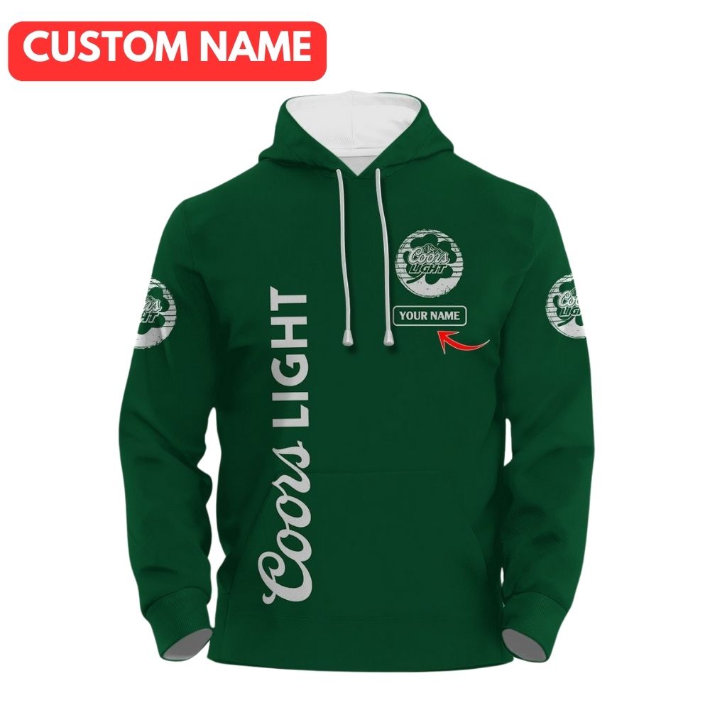 Celebrate St. Patrick’s Day in style with this personalized all-over print Coors Light hoodie. Stay cozy and stand out in the crowd with this unique and festive design. Perfect for showing off your Irish spirit!