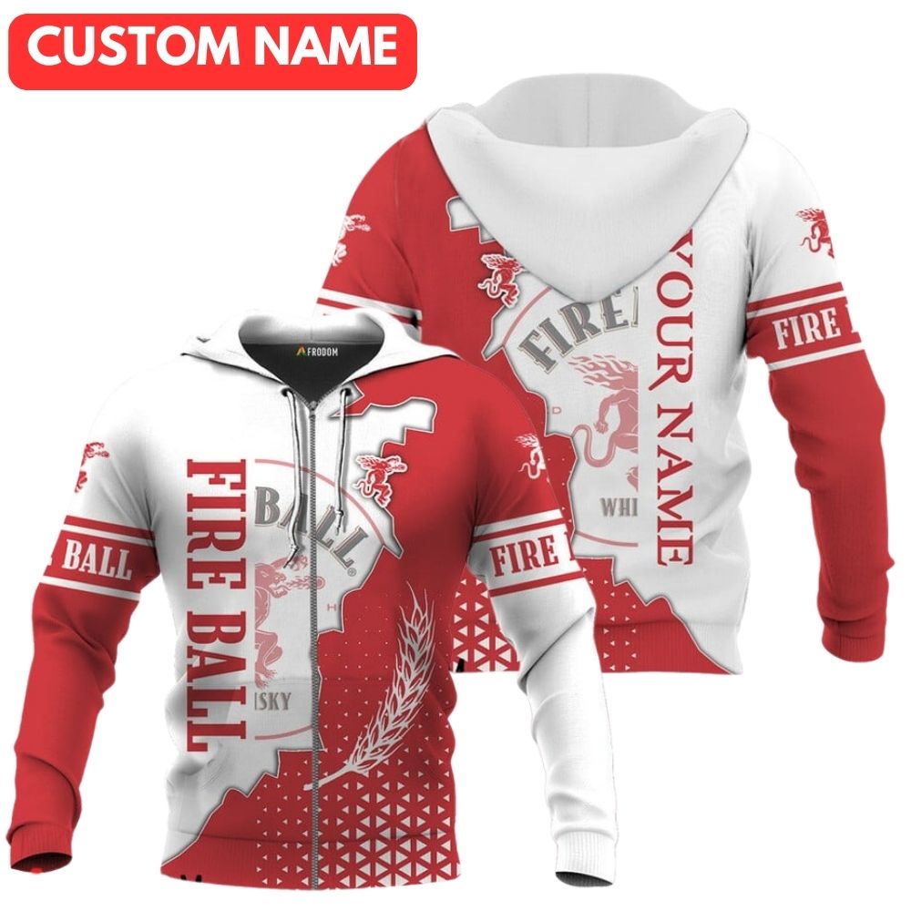 Get ready to turn heads with this personalized Fireball Whisky white and red cracking all-over print hoodie. Stay warm in style with this unique and eye-catching design. Perfect for standing out from the crowd and making a statement wherever you go.