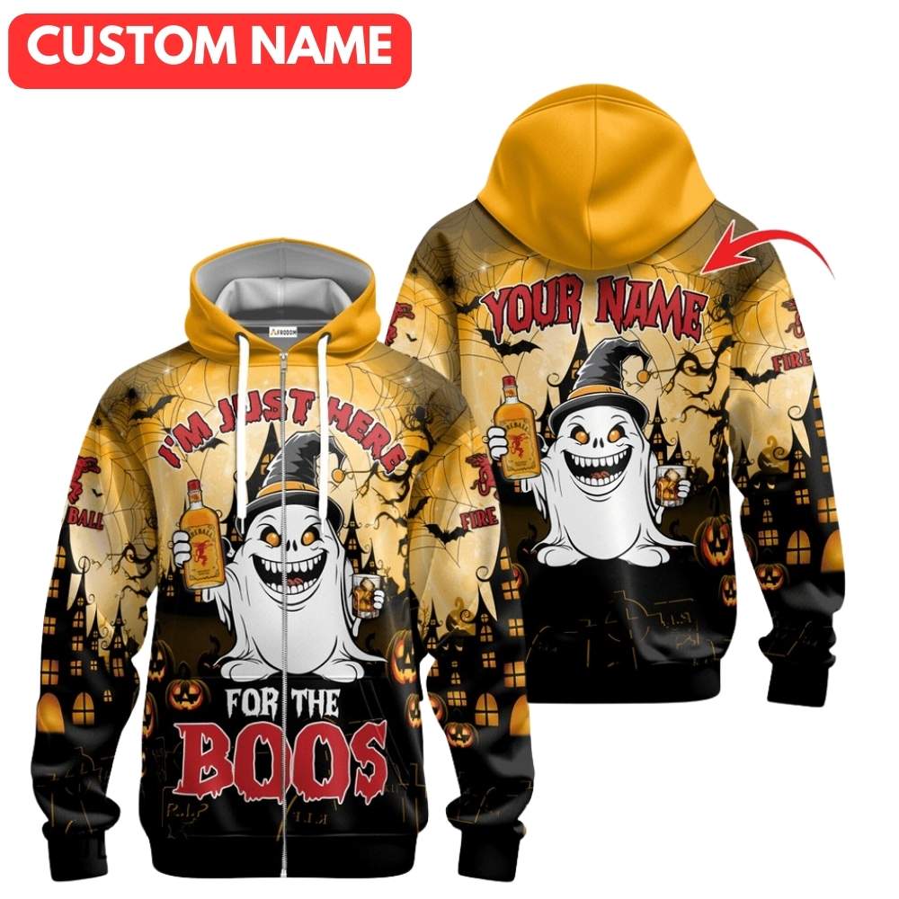 Personalized Im Just Here For The Boos Fireball Whisky All Over Print Hoodie