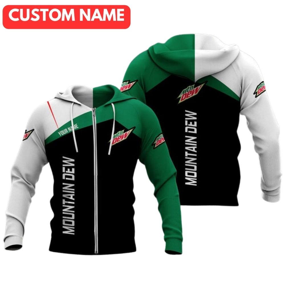 Elevate your style with this personalized logo Mountain Dew “In My Heart” hoodie. Stand out in black, green, and white all-over print. Perfect for staying cozy and making a statement.