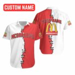 Discover a unique twist on the classic Hawaiian shirt with this personalized McDonald’s logo design in white and red. Perfect for adding a touch of humor and individuality to your wardrobe.
