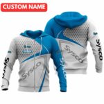 Customize your style with this vibrant blue and white all-over print hoodie. Stay warm and stand out in this personalized piece that is sure to turn heads.