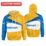 Show your Walmart pride with this personalized blue, white, and orange all-over print hoodie featuring the iconic Walmart logo. Stay cozy and stylish while representing your favorite brand.