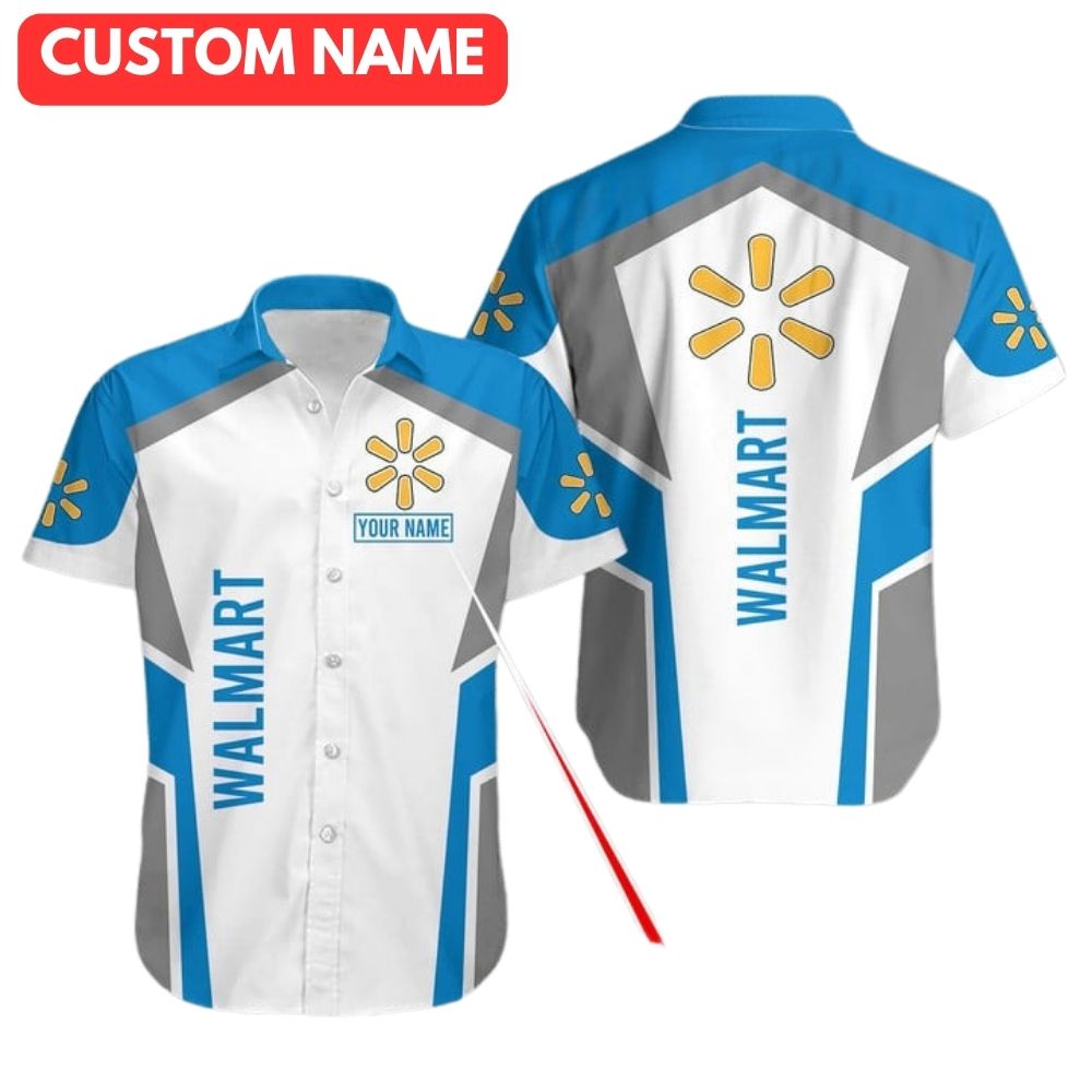 Personalized Walmart In My Heart White And Blue Hawaiian Shirt