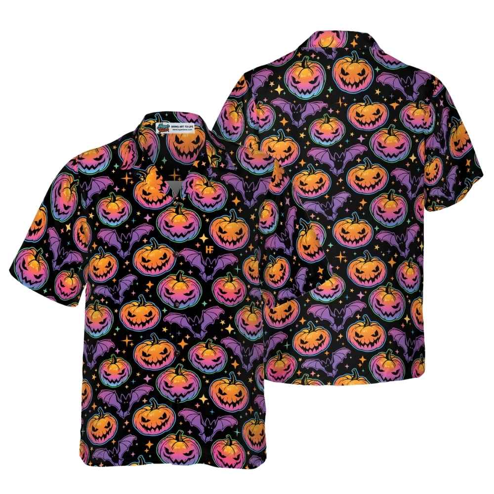Get into the spooky spirit with this Pumpkin and Bat Halloween Pattern Hawaiian Shirt. Perfect for adding a touch of Halloween fun to your wardrobe.