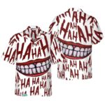 Get into the spooky spirit with this Scary Halloween Clown Smile Hawaiian Shirt. Perfect for adding a touch of fright to your tropical wardrobe.