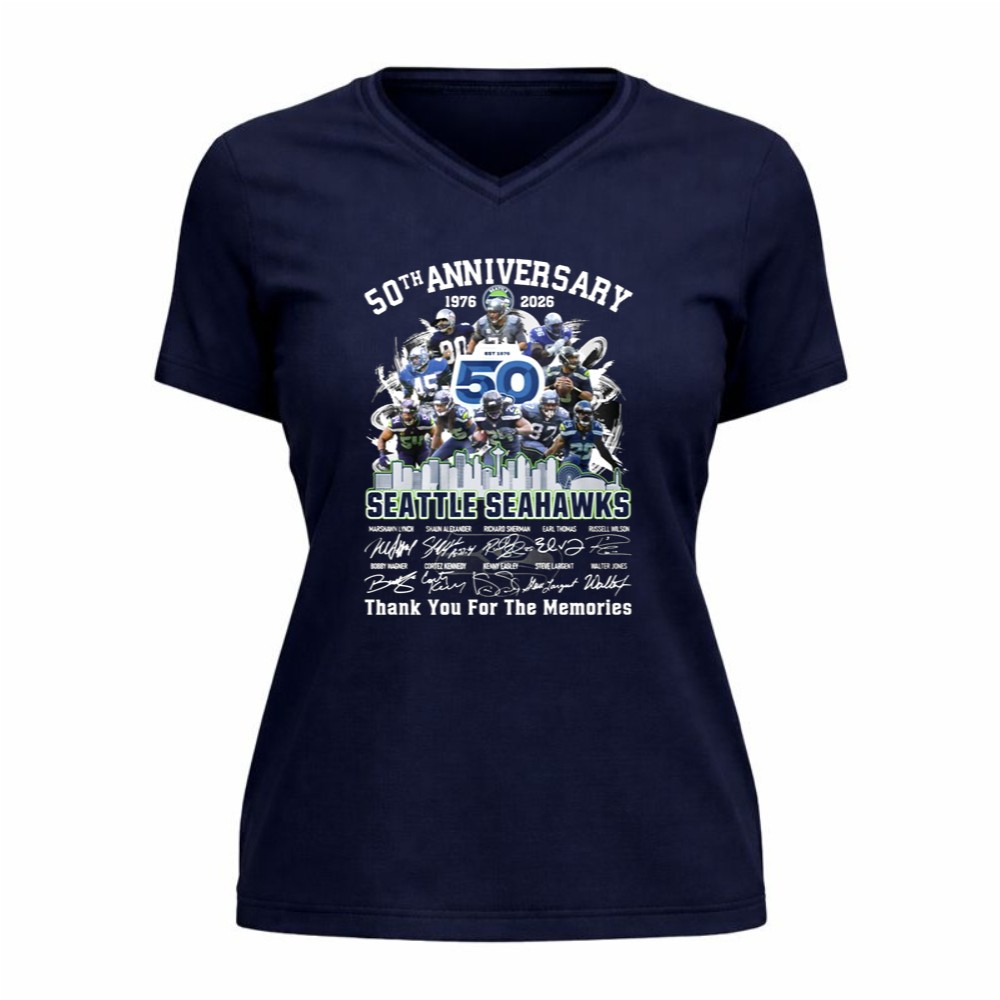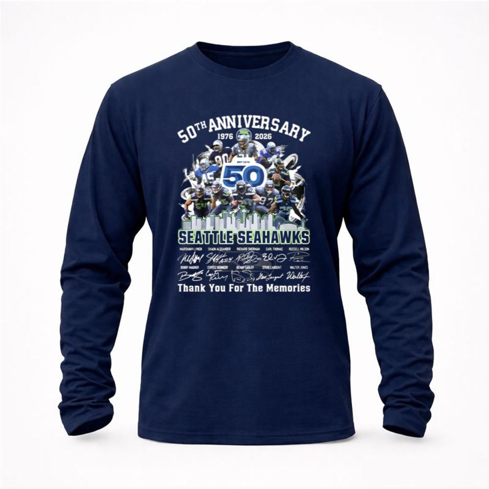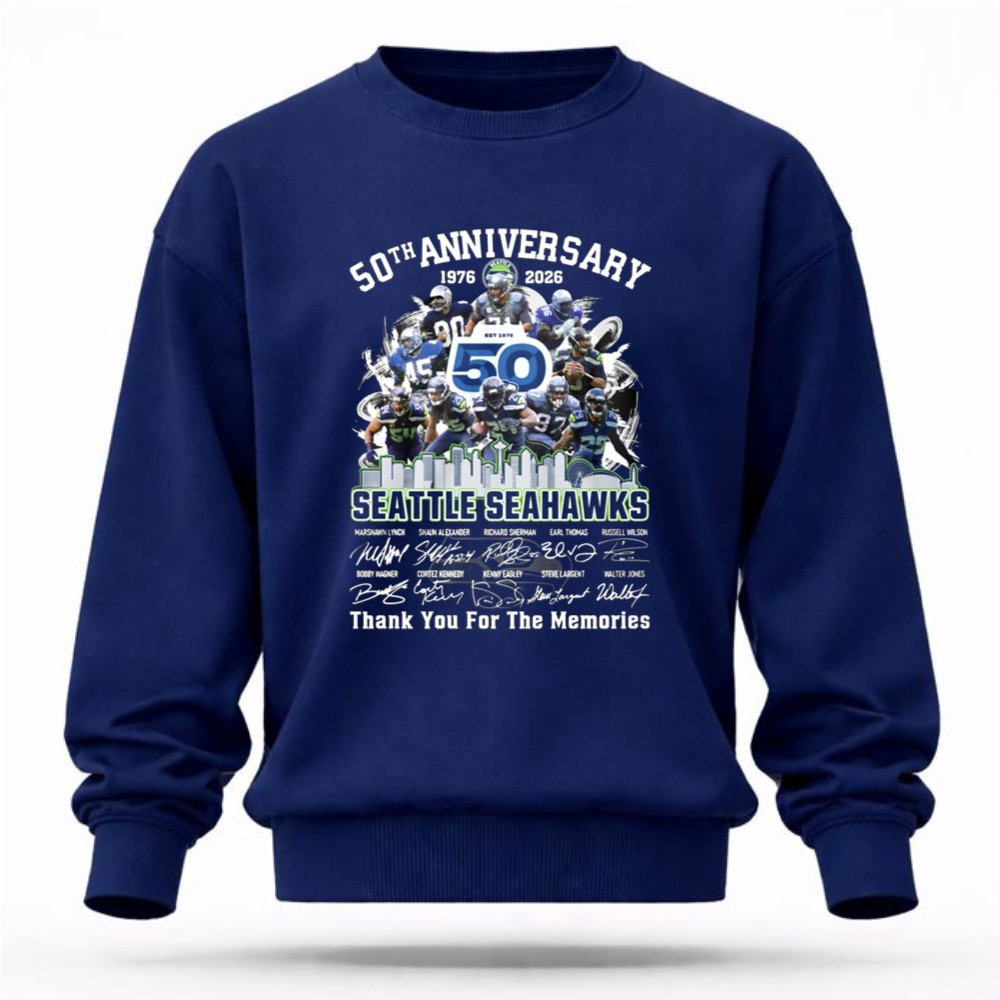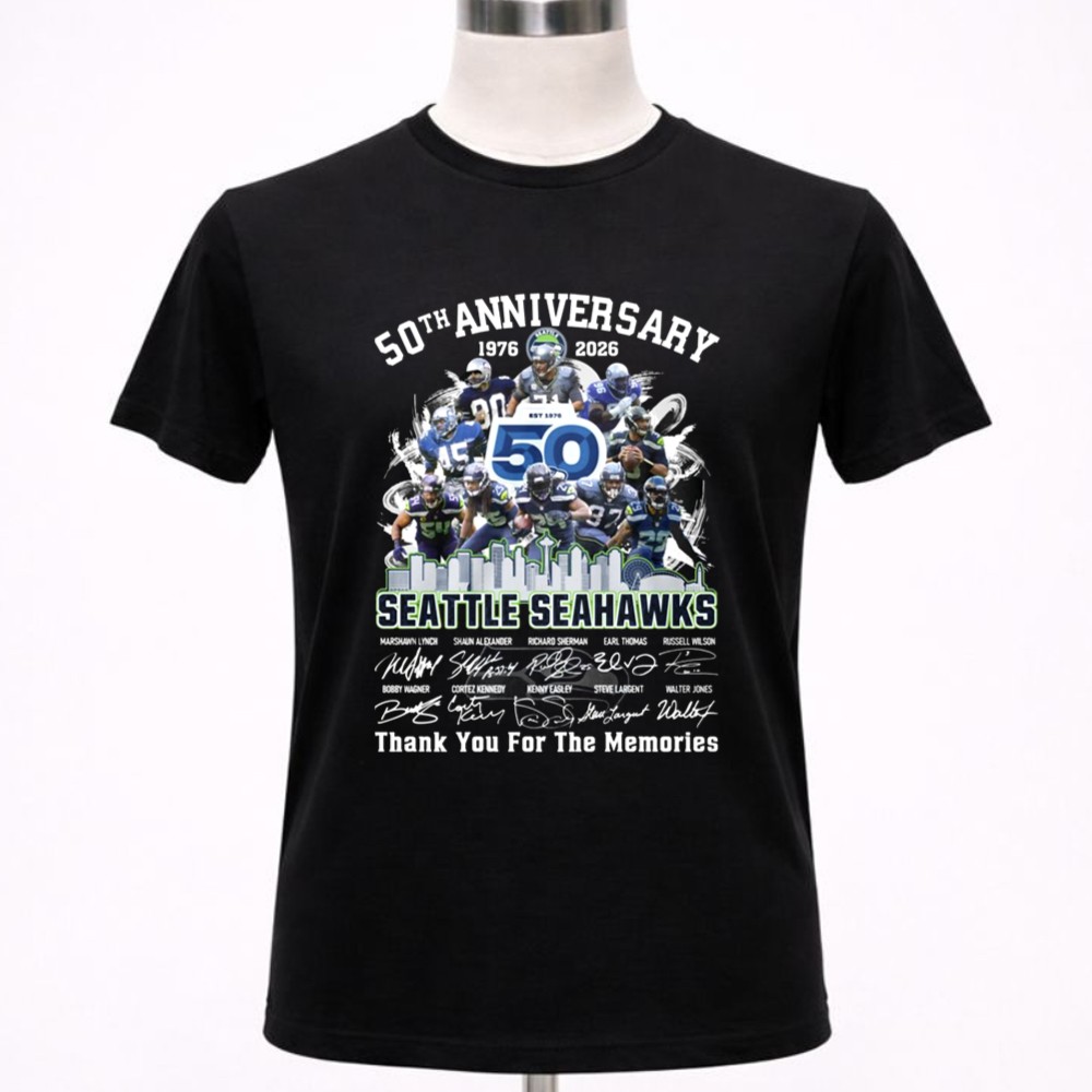 This design captures the essence of the Seattle Seahawks’ journey over 50 years, blending bold graphics with a heartfelt tribute to legends like Marshawn Lynch and Russell Wilson. It’s a wearable celebration of unforgettable moments and the city’s unwavering passion for football, evoking pride and nostalgia for lifelong fans.