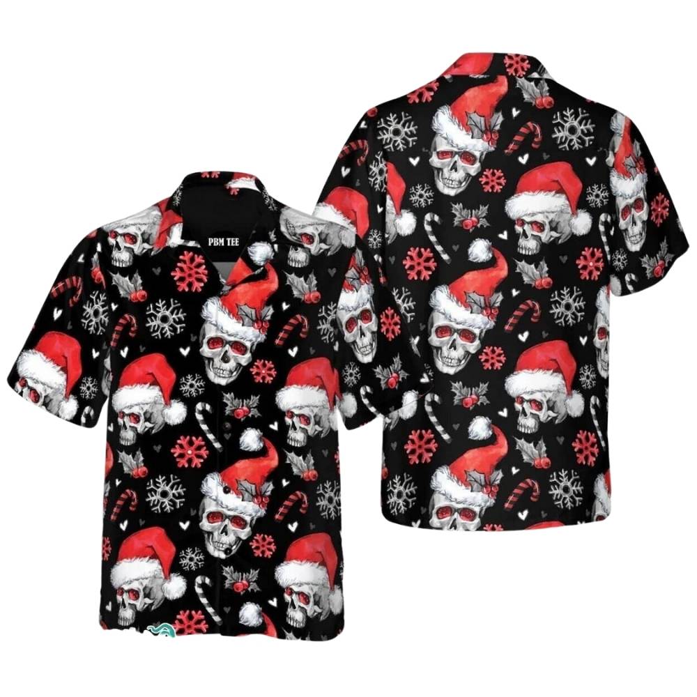 Celebrate the holidays in style with our Skull Christmas Day Pattern Hawaiian Shirt. Perfect for adding a festive touch to your wardrobe. Shop now!