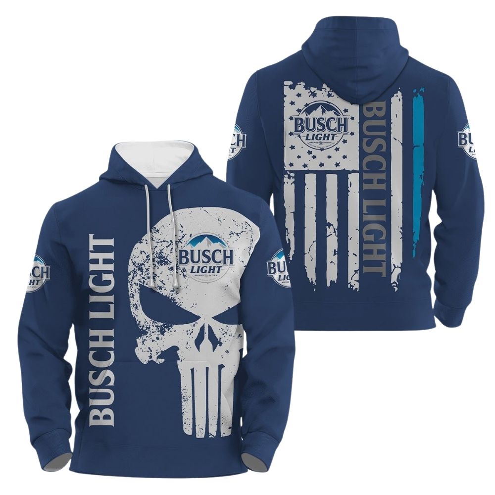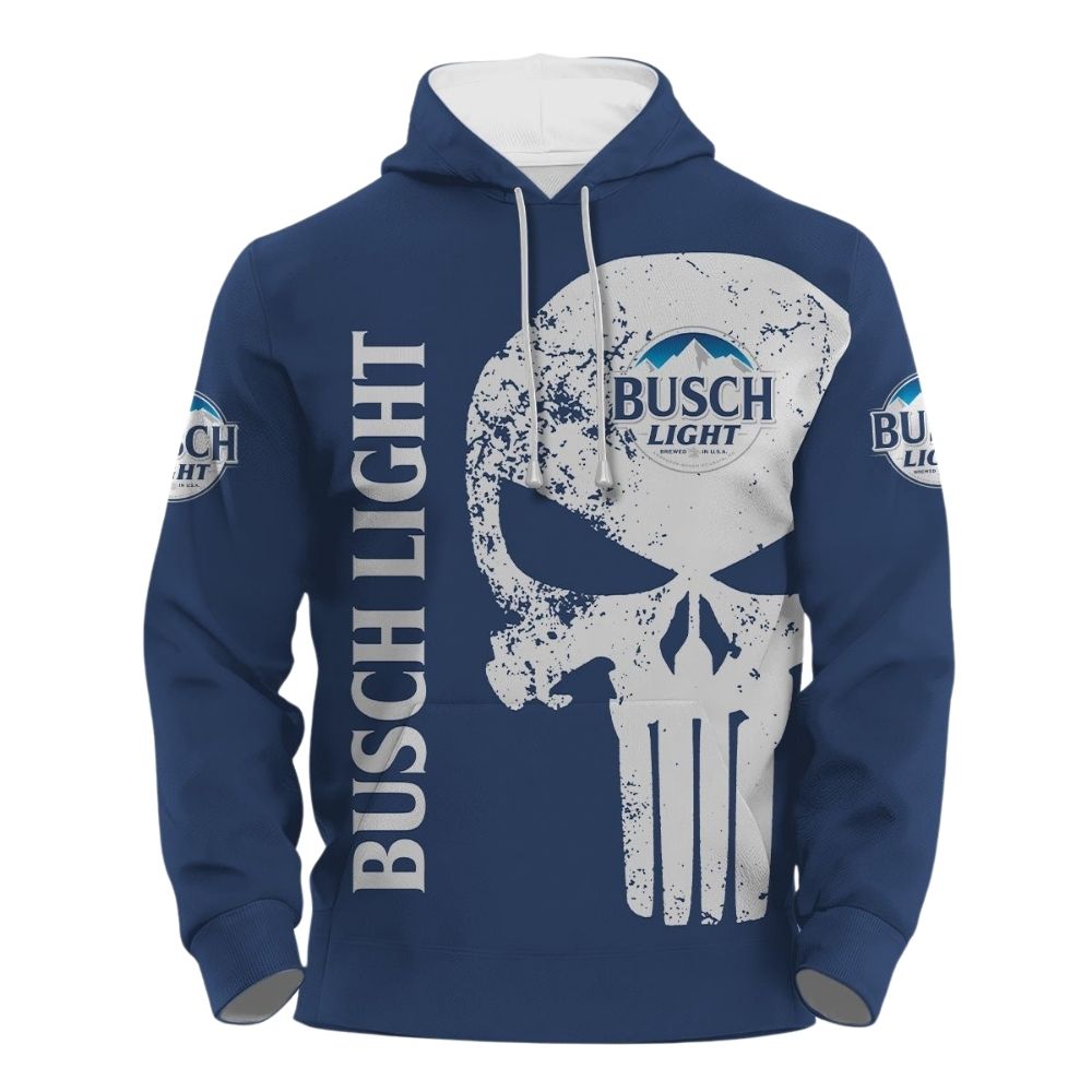 Shop the Skull Punisher With Busch Light All Over Print Hoodie for a bold and edgy look. Stay warm and stand out in style with this unique and eye-catching design. Perfect for casual outings or lounging at home. Get yours today!