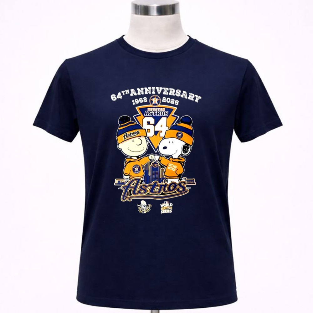 This design captures the spirit of celebration for the Houston Astros’ 64th anniversary, merging the playful charm of Snoopy and Charlie Brown with the pride of being part of Houston’s sports community. The vibrant colors and fun cartoon style invite fans to reminisce about their childhood while cheering for their team, creating a heartfelt connection to both baseball and beloved characters.