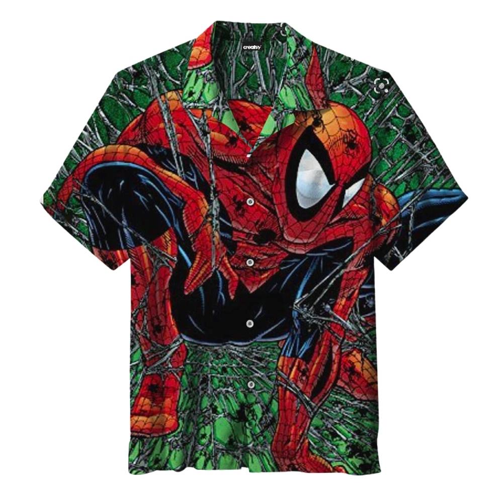 Add a touch of superhero style to your wardrobe with this Spiderman Grunge Hawaiian Shirt. Perfect for comic book fans looking to stand out with a unique and trendy look.