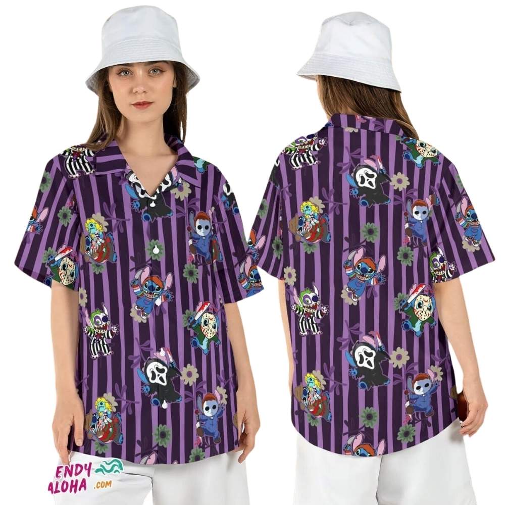 Stitch Horror Movie Characters Halloween Scary Spooky Hawaiian Shirt