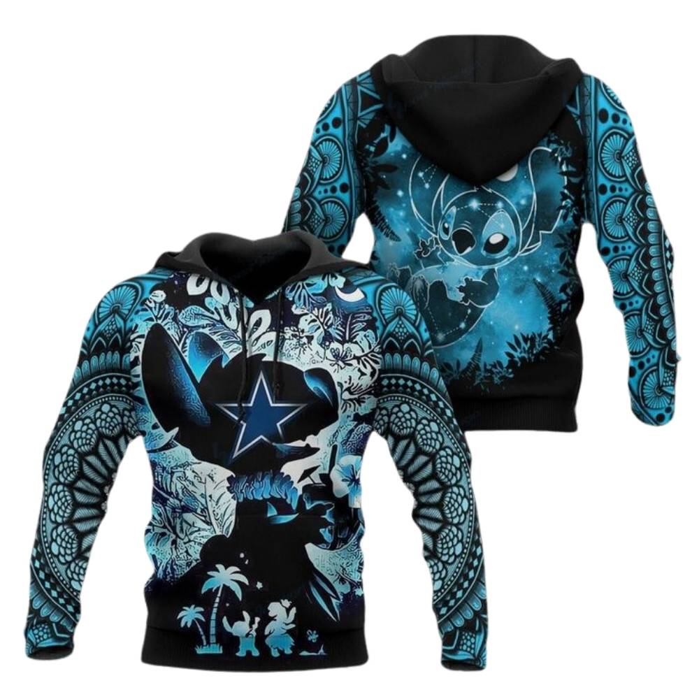 Get ready to turn heads with the Stitch Love Dallas All Over Print Hoodie. Stay warm in style with this unique and eye-catching design. Perfect for adding a pop of personality to your wardrobe.