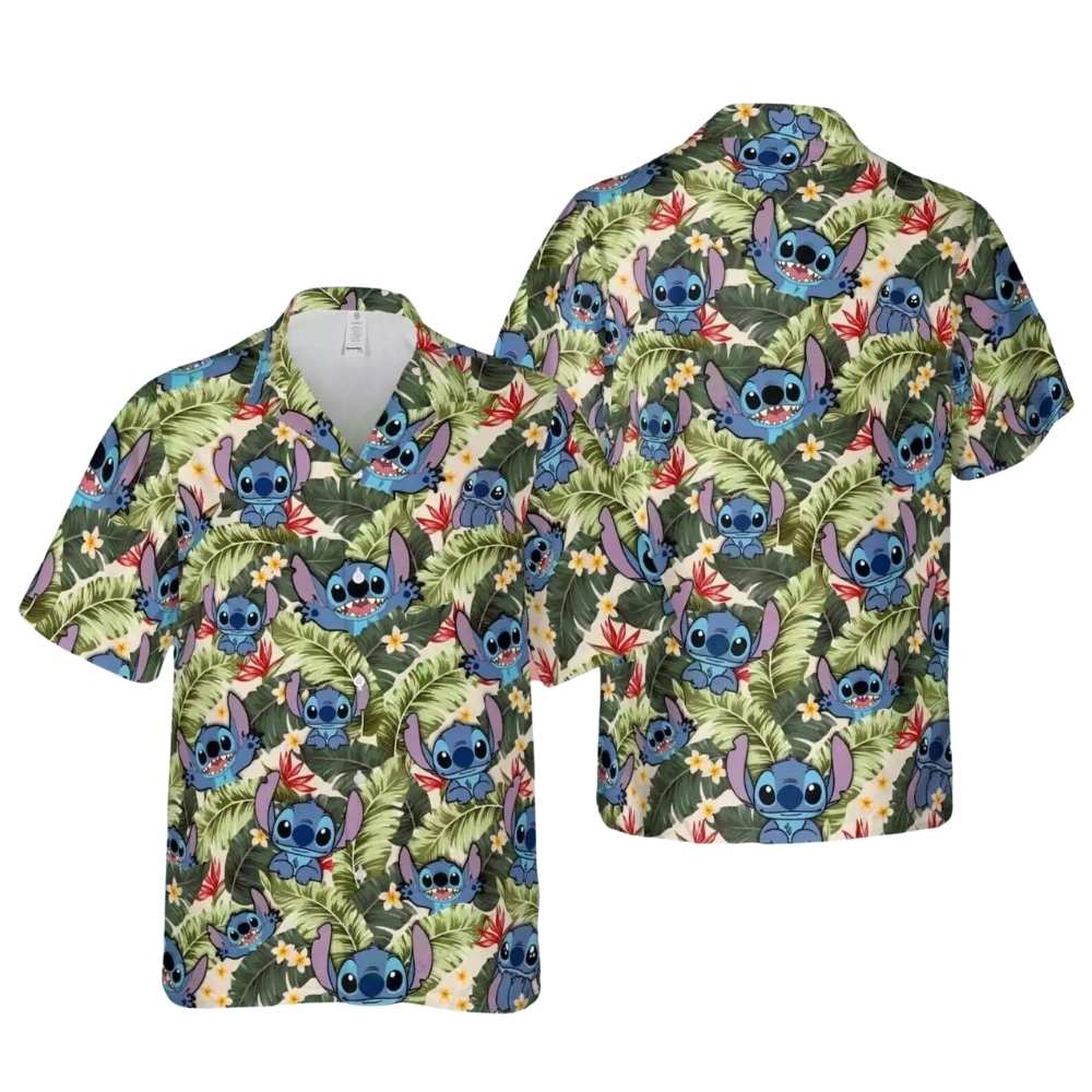 Embrace the spirit of ‘ohana with this vibrant Stitch Tropical Leaves Hawaiian Shirt. Perfect for summer adventures and adding a touch of tropical flair to your wardrobe.