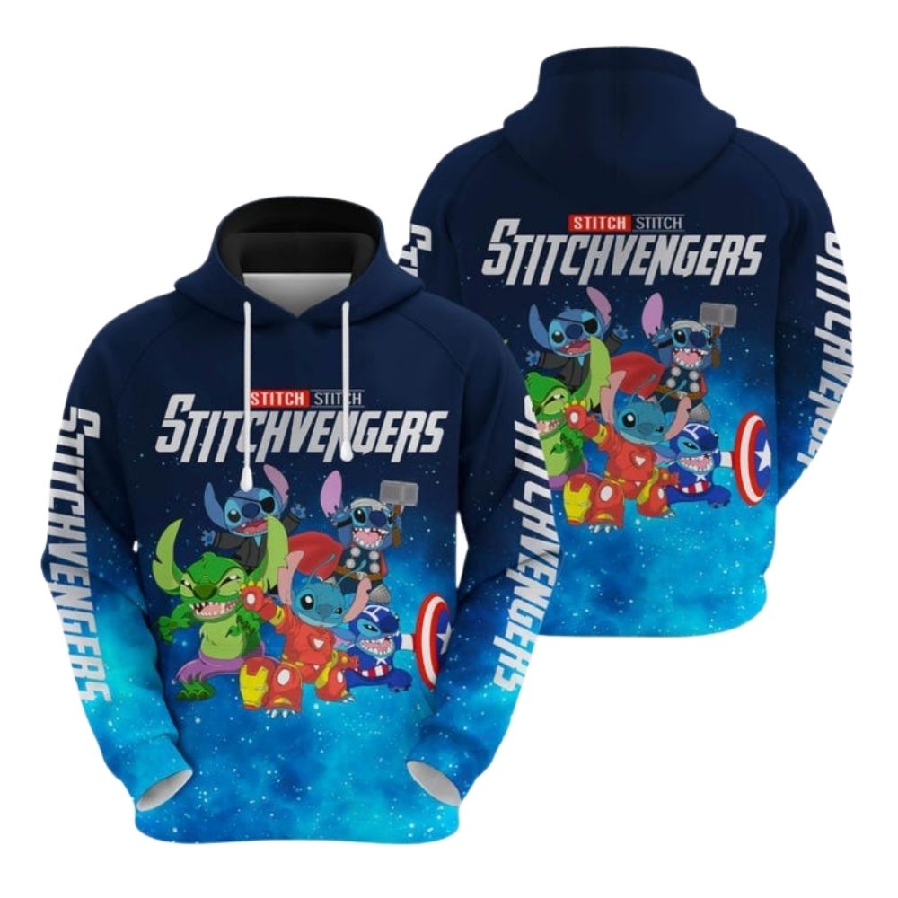 Add a touch of humor to your wardrobe with the Stitchvengers Funny All Over Print Hoodie. Stand out from the crowd with this unique and eye-catching design that is sure to turn heads. Perfect for adding a fun twist to your everyday style.