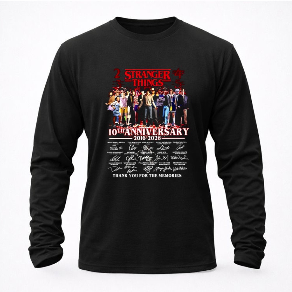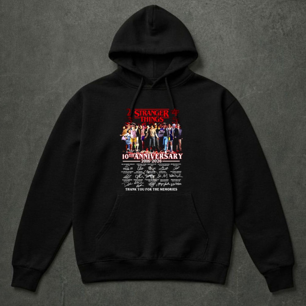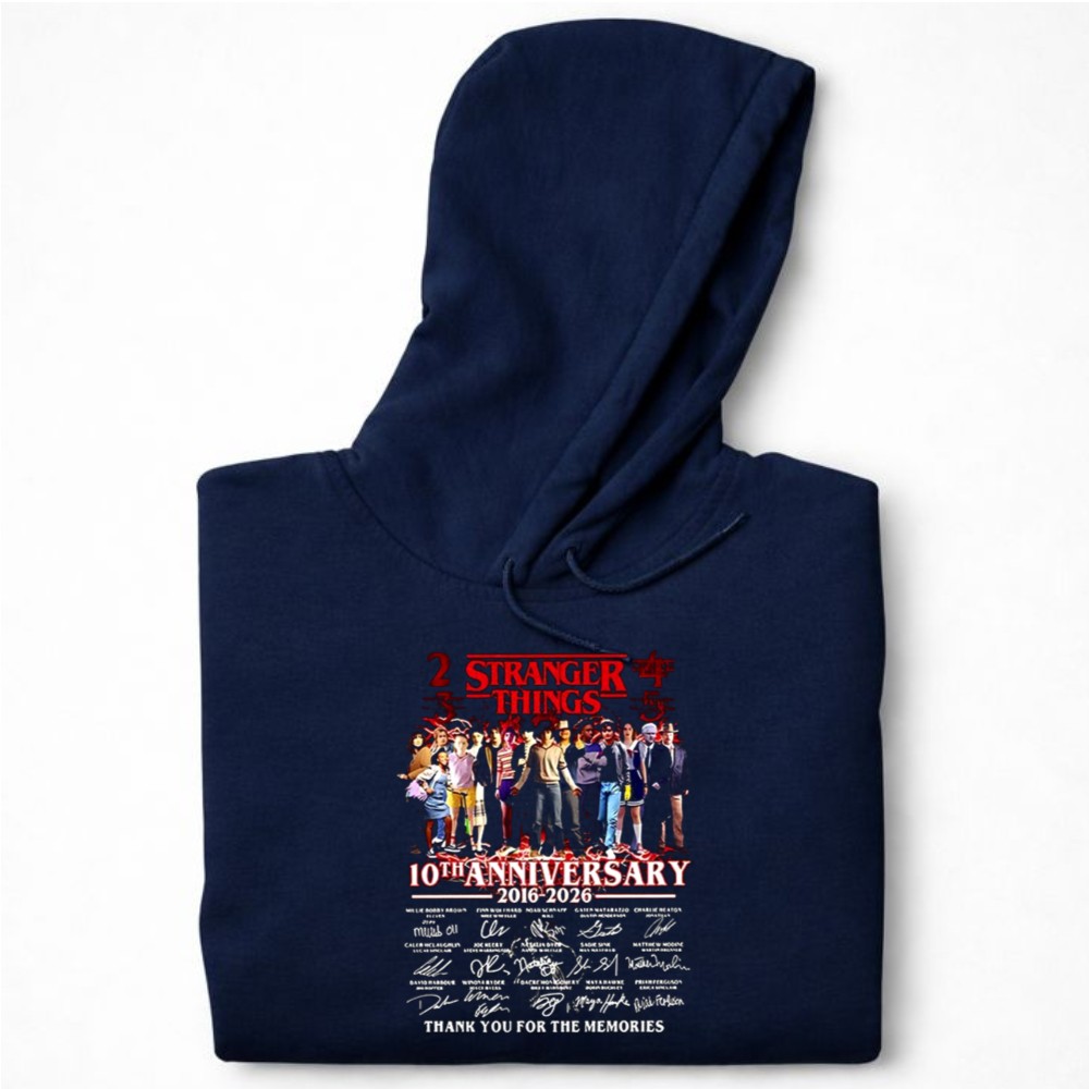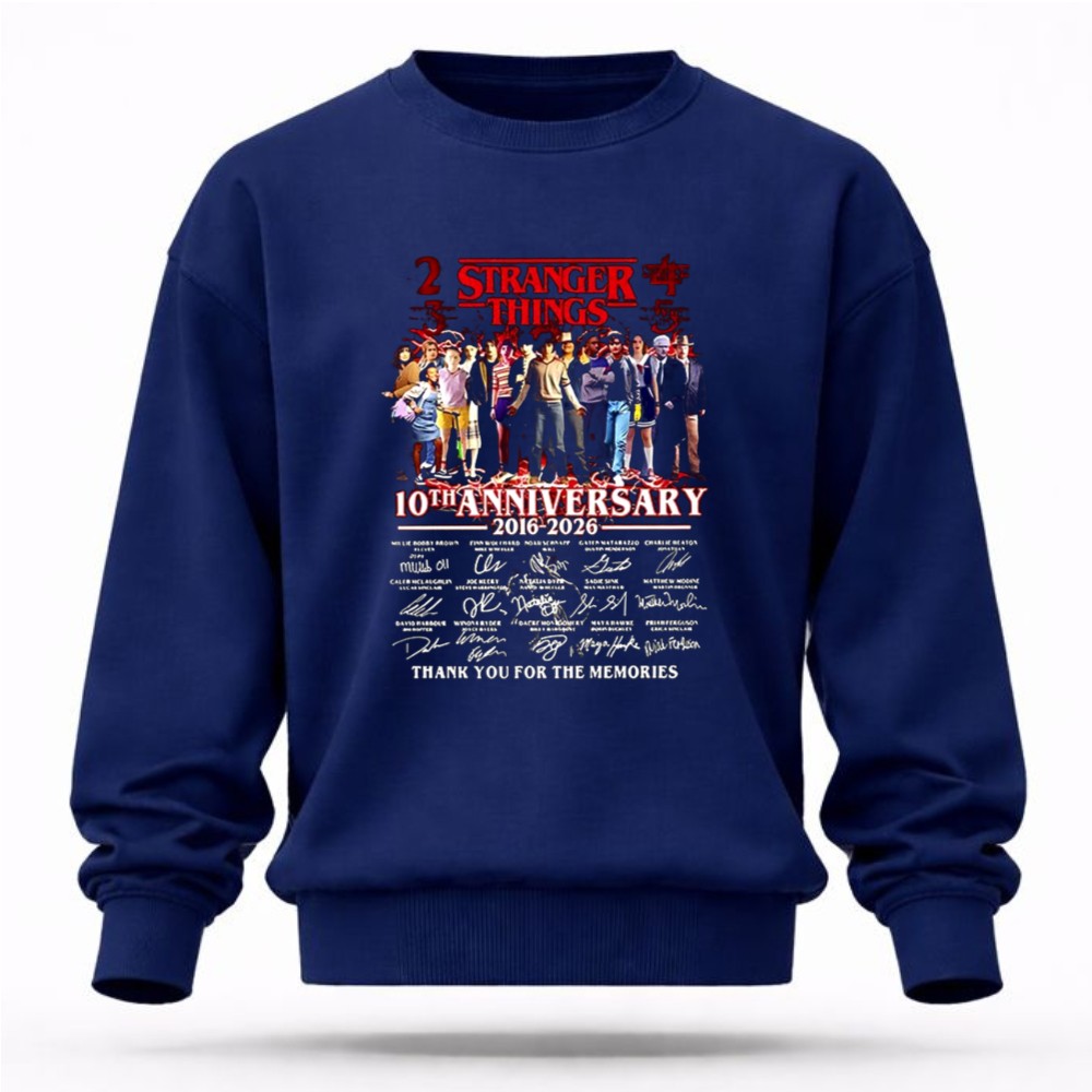 This design encapsulates ten years of shared memories and adventures, featuring the heartfelt message ‘Thank You For The Memories’. It serves as a vibrant homage to the beloved characters of Stranger Things, inviting fans to celebrate their connection to the series and each other as they reflect on the unity and joy it has brought into their lives.