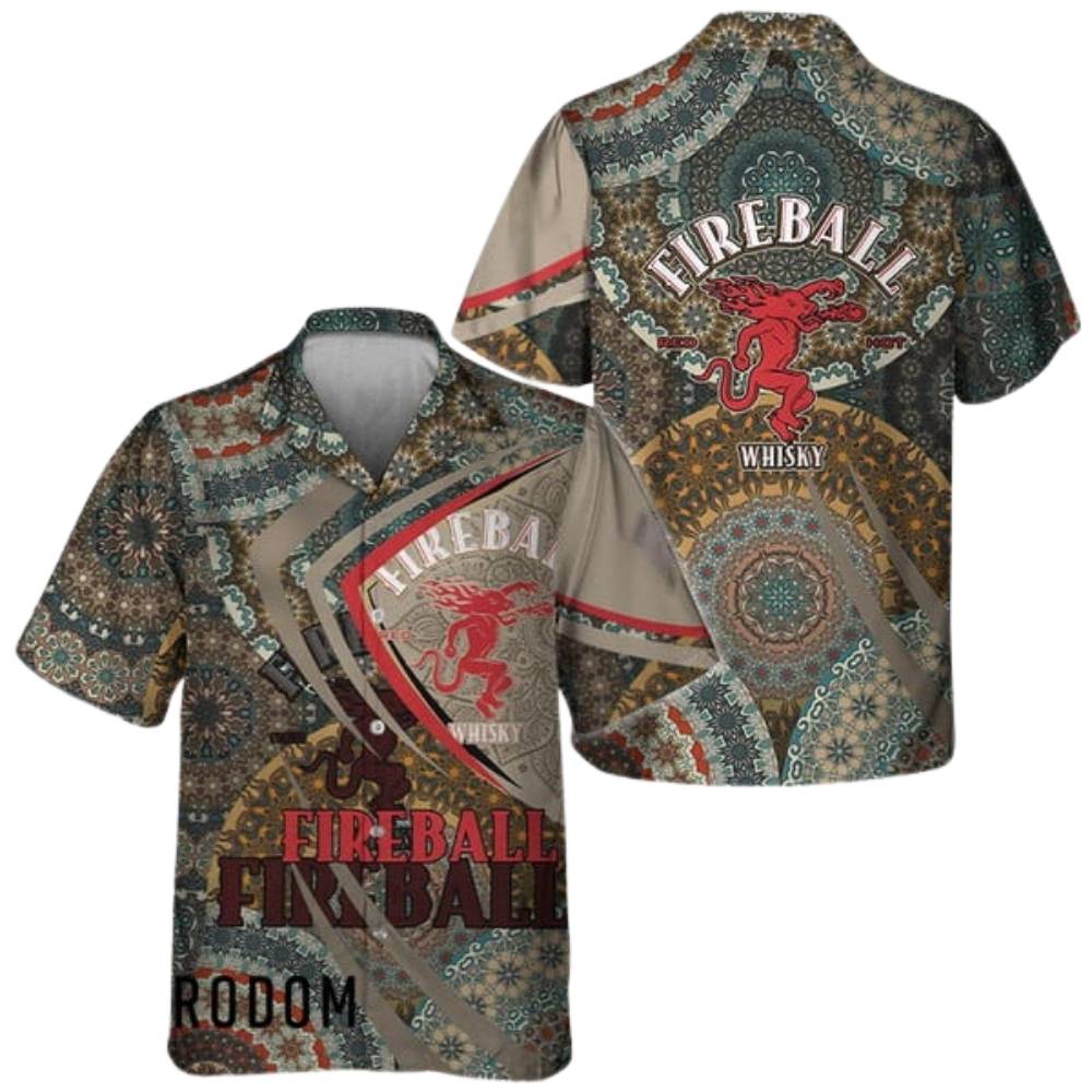 Get ready to turn heads with this vibrant Summer Boho Mandala Fireball Whisky Hawaiian Shirt. Perfect for adding a touch of bohemian flair to your wardrobe.