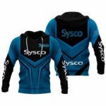 Show off your style with the Sysco Logo Blue And Black All Over Print Hoodie. Stay warm and trendy in this eye-catching design. Perfect for any casual outing or lounging at home.