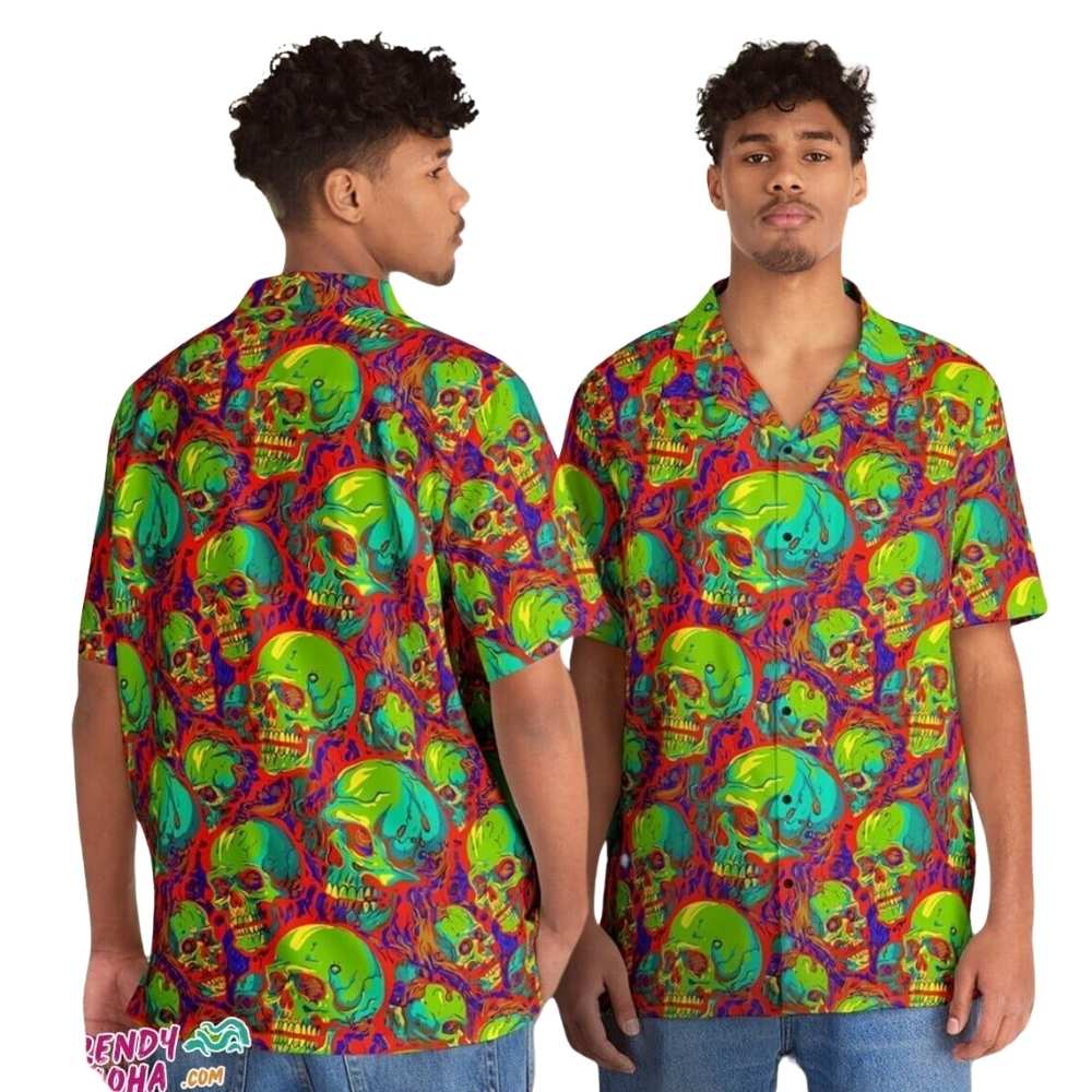 Get ready to turn heads with this Terrifying Zombie Brains Pattern Hawaiian Shirt. Perfect for standing out at any event or party.