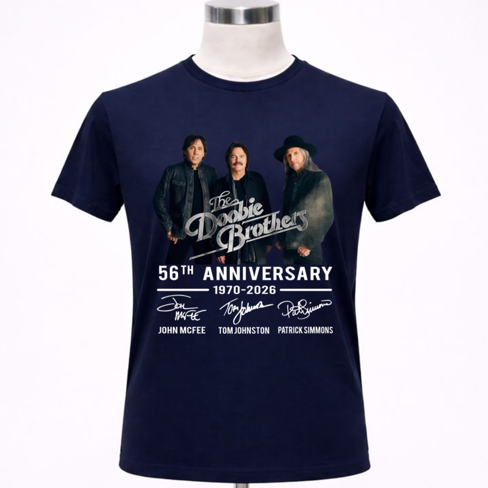 This design captures the essence of a remarkable era in rock music, celebrating the 56th anniversary of The Doobie Brothers. Featuring the signatures of John McFee, Tom Johnston, and Patrick Simmons, it embodies both nostalgia and honor, making it a heartfelt tribute to a band that has brought joy and unity through their timeless melodies.