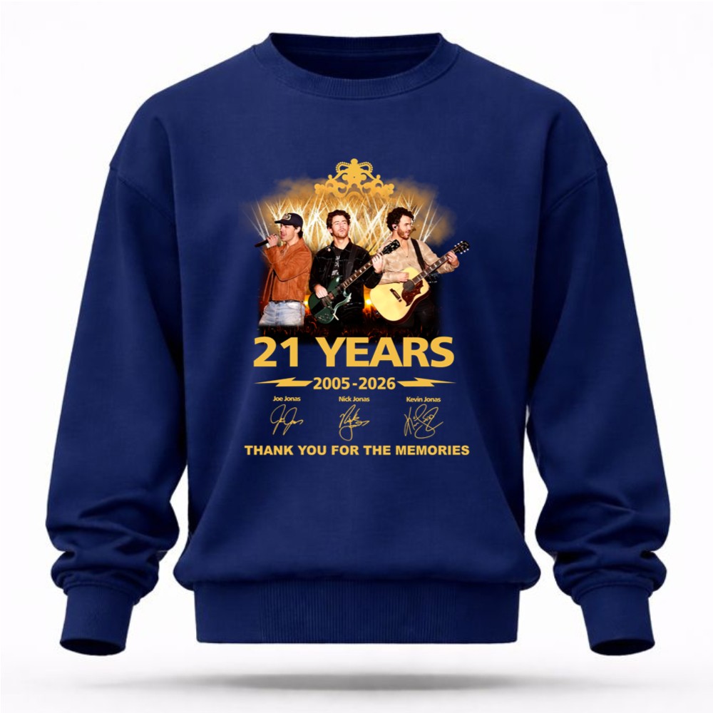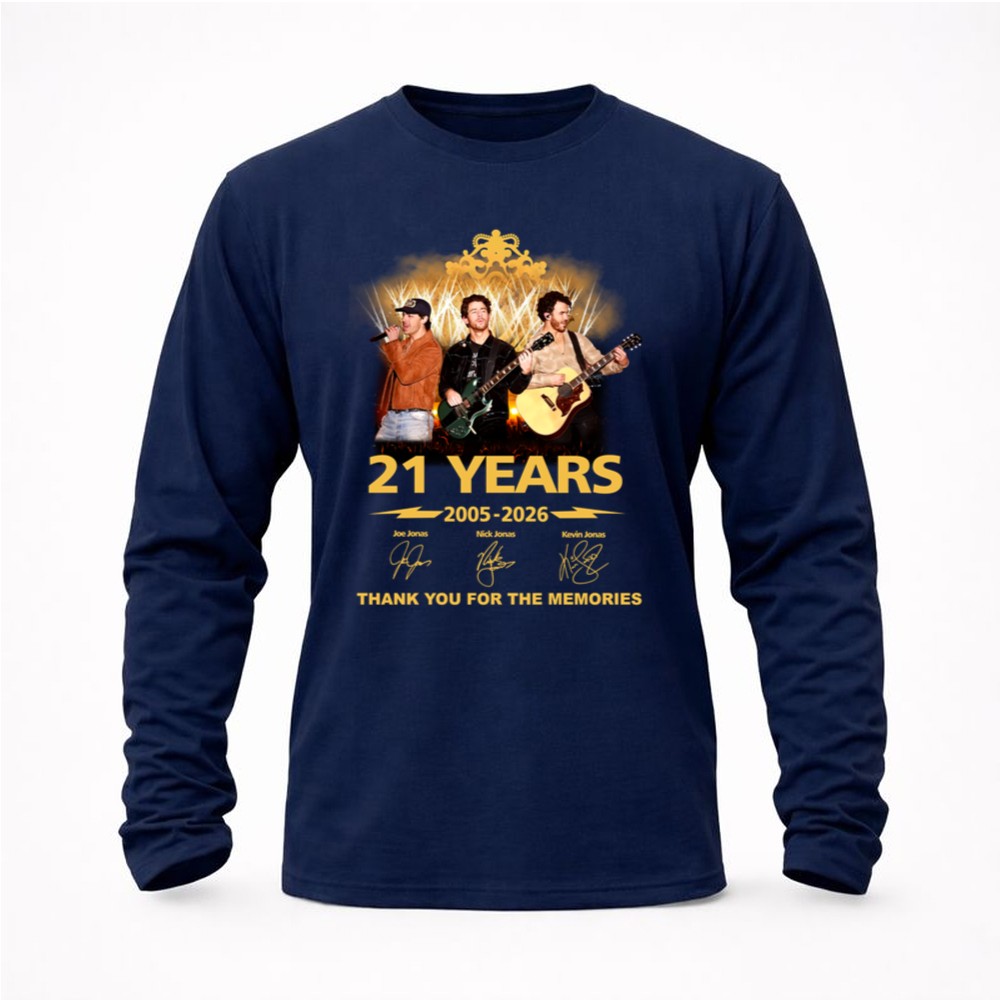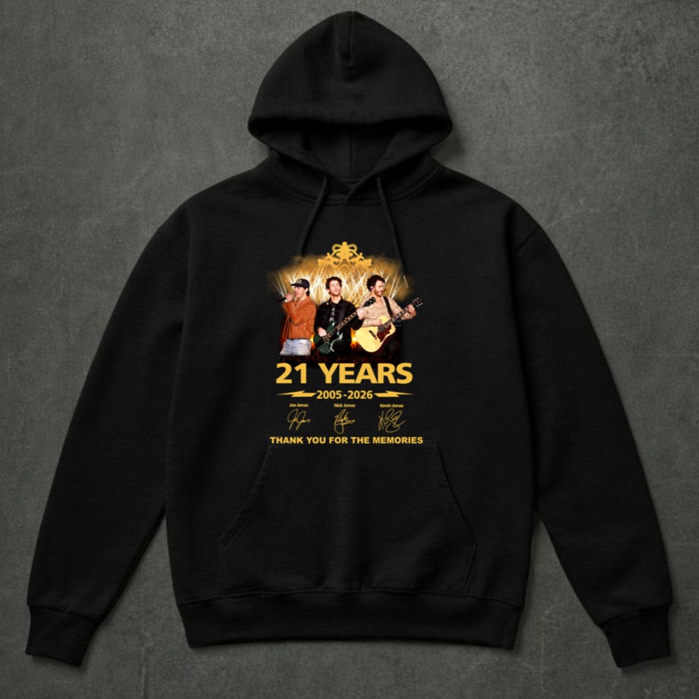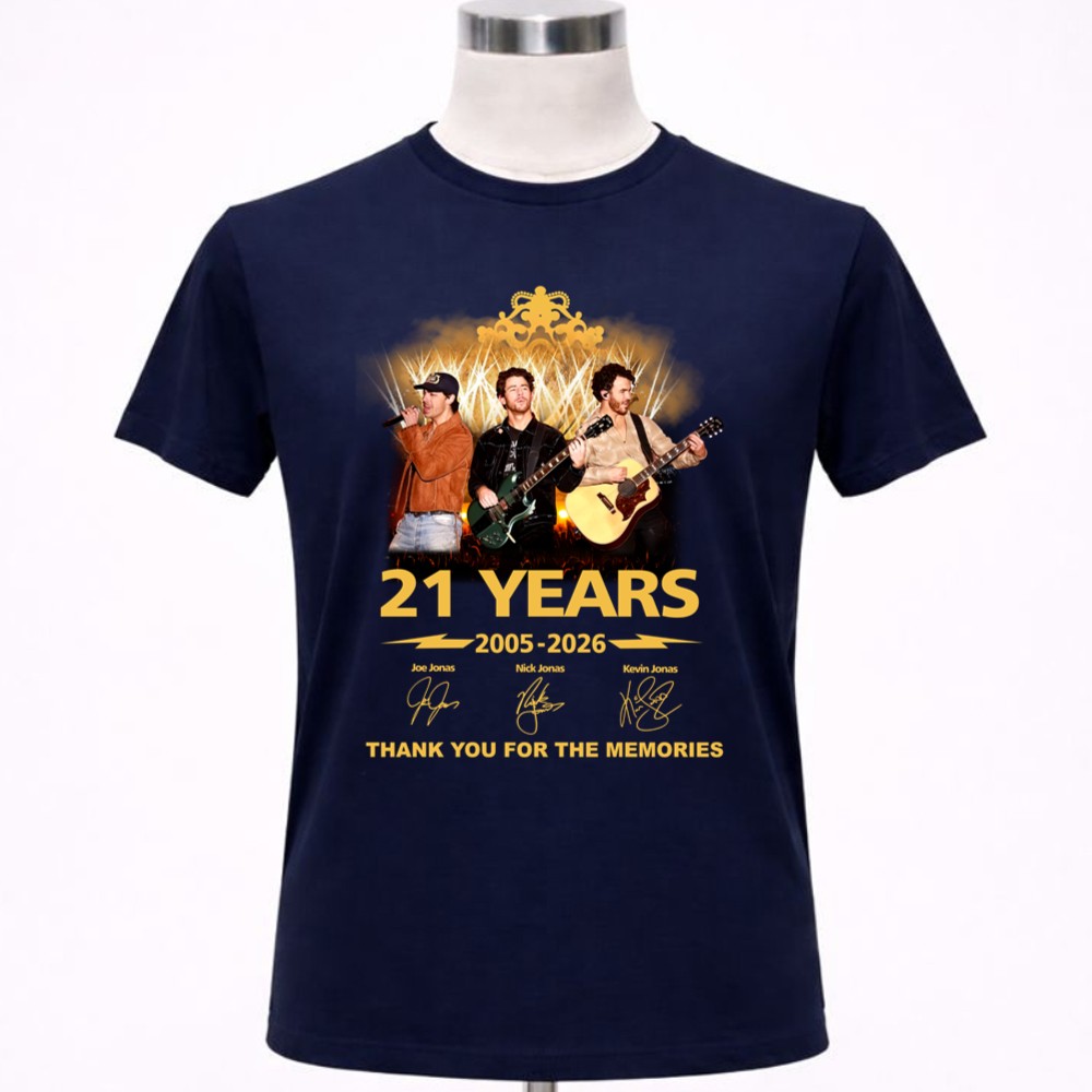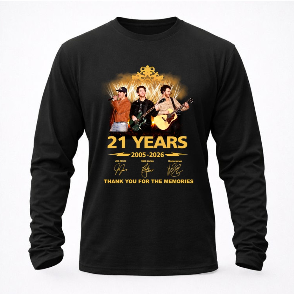 This design commemorates 21 incredible years of the Jonas Brothers, showcasing their journey through vibrant concert visuals and bold typography. It serves as a heartfelt thank you from the brothers to their fans, celebrating the memories created through their music. This tribute encapsulates the spirit of pop culture, capturing the joy and nostalgia of shared experiences.