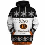 Celebrate the holiday season in style with this festive Merry Christmas All Over Print Hoodie featuring Tito’s Handmade Vodka design. Perfect for spreading cheer and staying cozy during the winter months.
