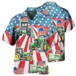 Tractor Independence Day Watercolor Tractor Us Flag Hawaiian Shirt 5