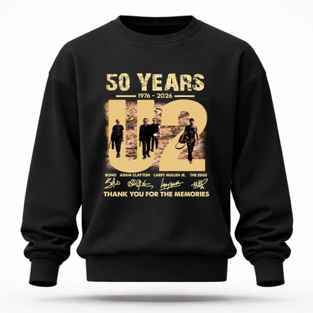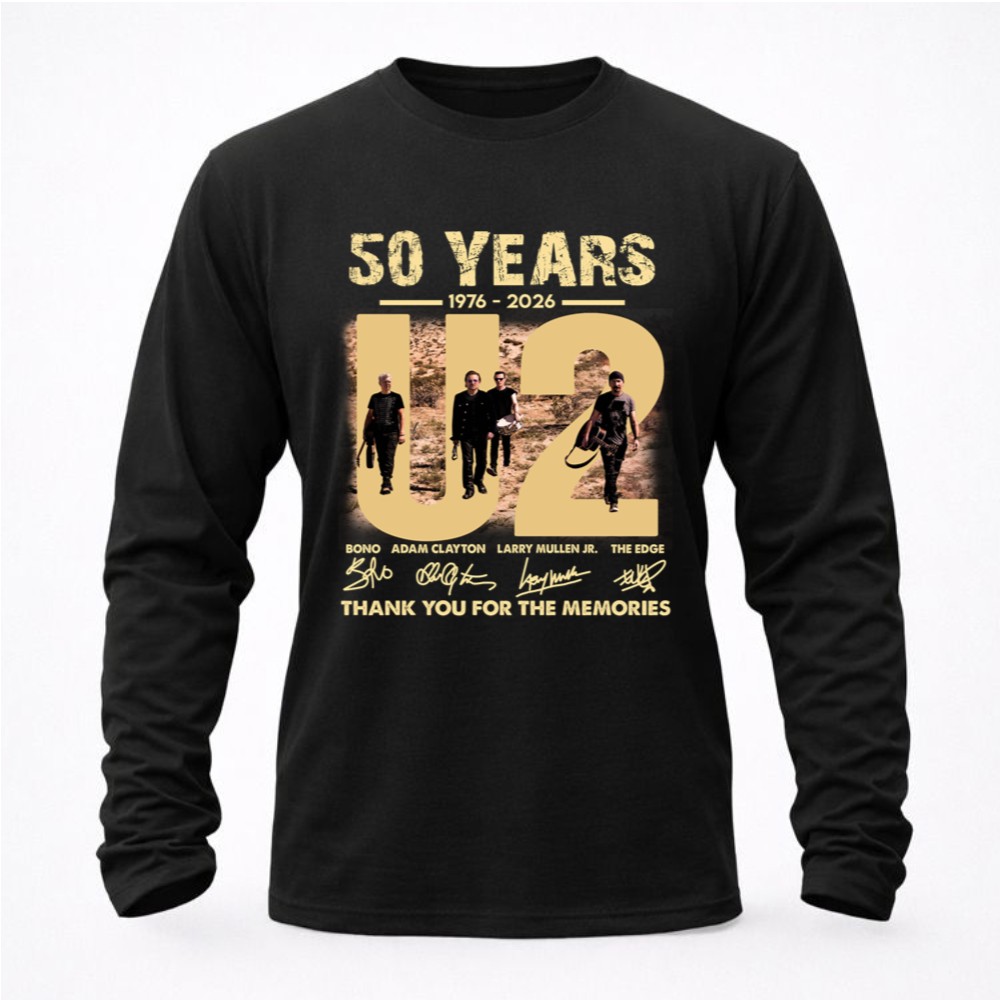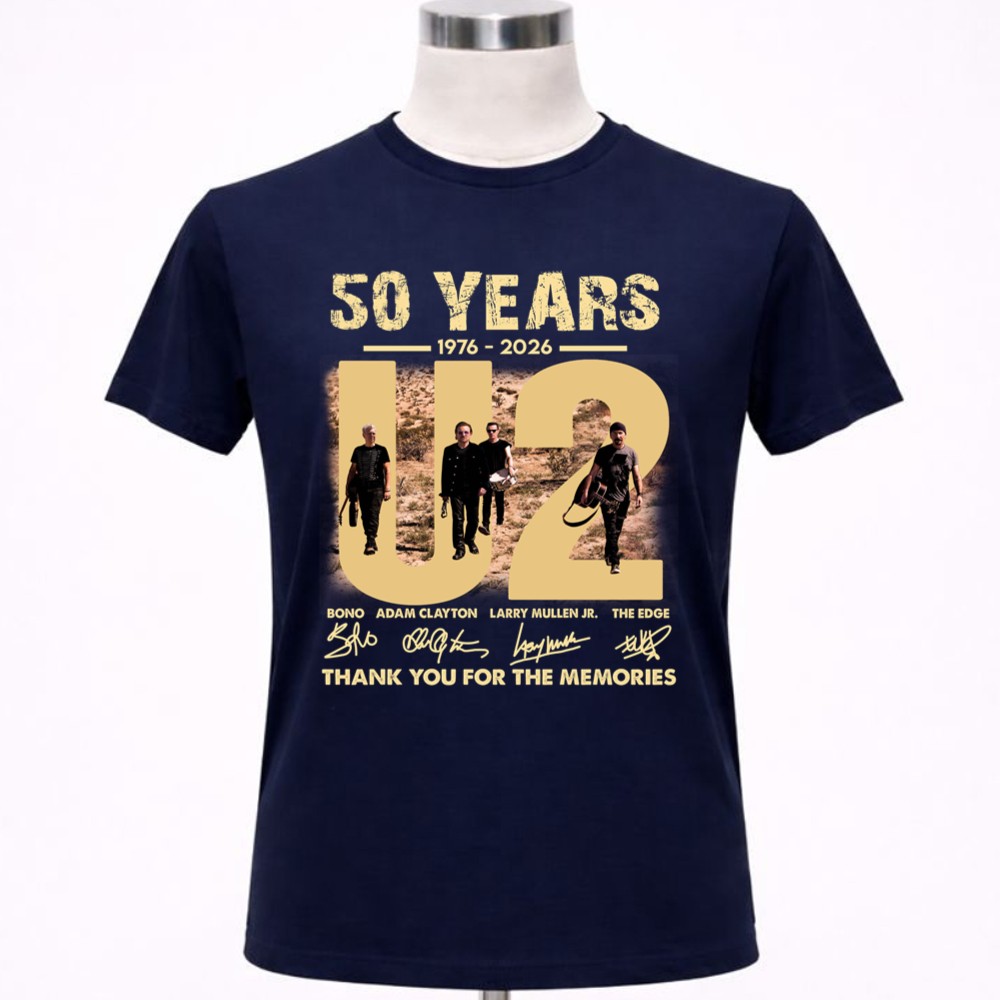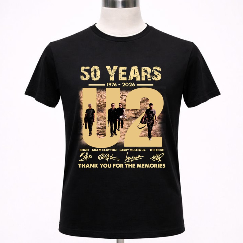 U2 50th anniversary, music legends tribute, rock band memorabilia, thank you for the memories, iconic rock apparel, fan culture, concert wear, premium soft tee