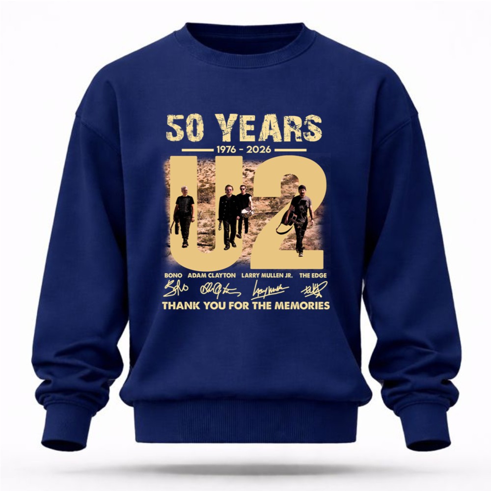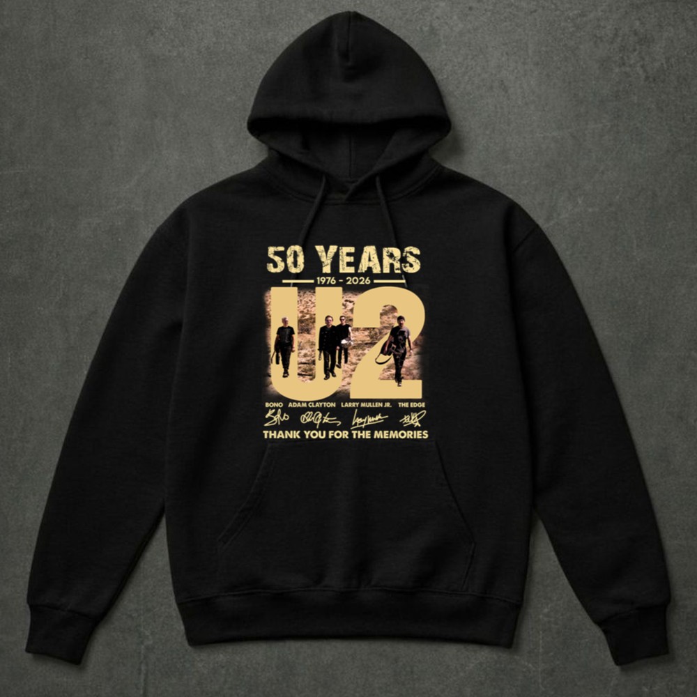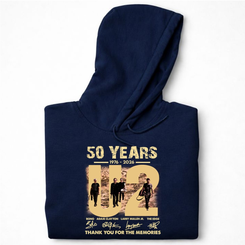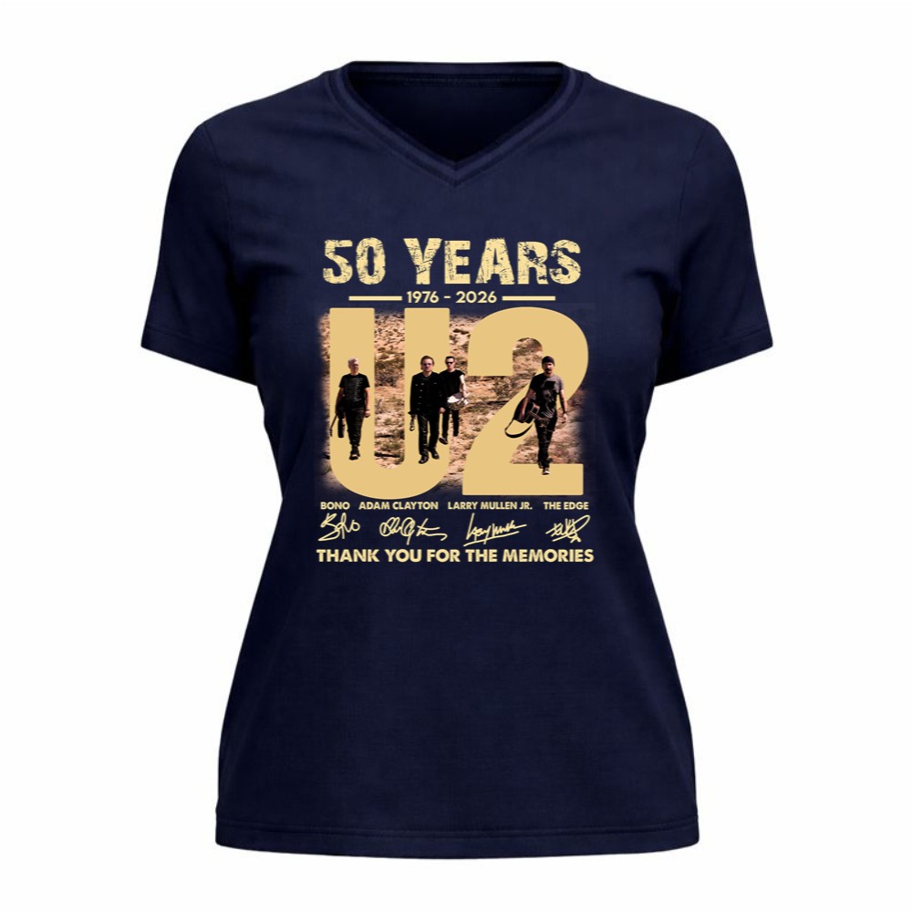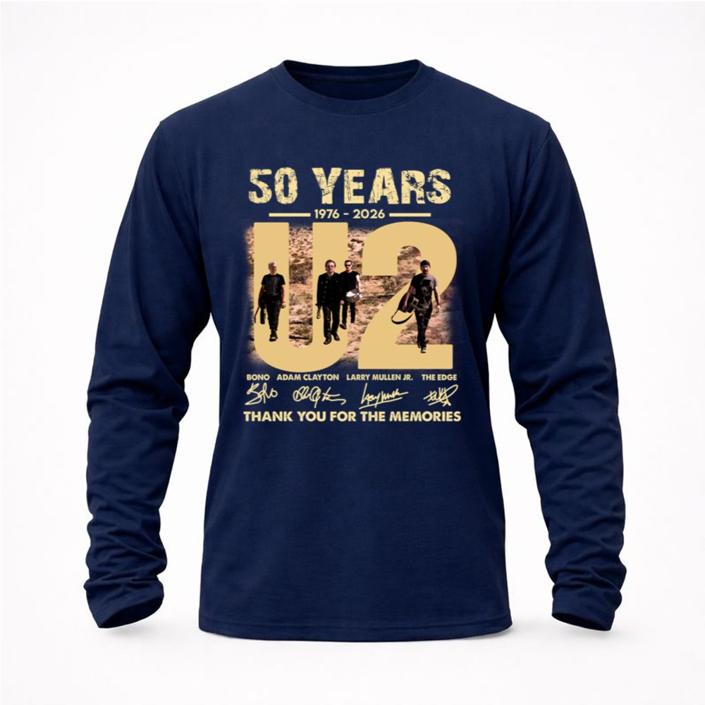 U2 50th anniversary, music legends tribute, rock band memorabilia, thank you for the memories, iconic rock apparel, fan culture, concert wear, premium soft tee