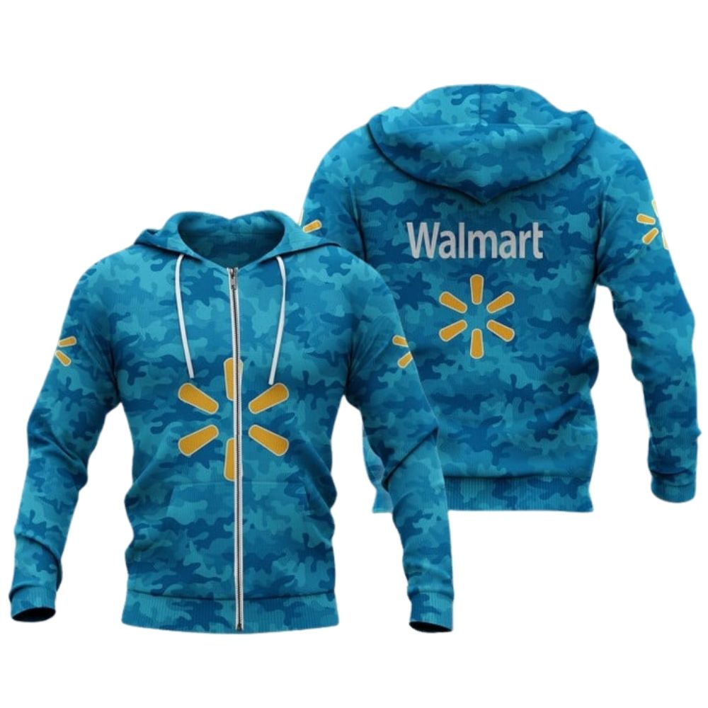 Blend in with nature in style with this Walmart logo camouflage all-over print hoodie. Stay warm and cozy while showcasing your love for the retail giant. Perfect for casual outings or lounging at home. Shop now!
