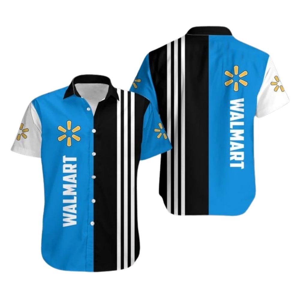 Walmart Logo Stripe Black White And Blue Hawaiian Shirt