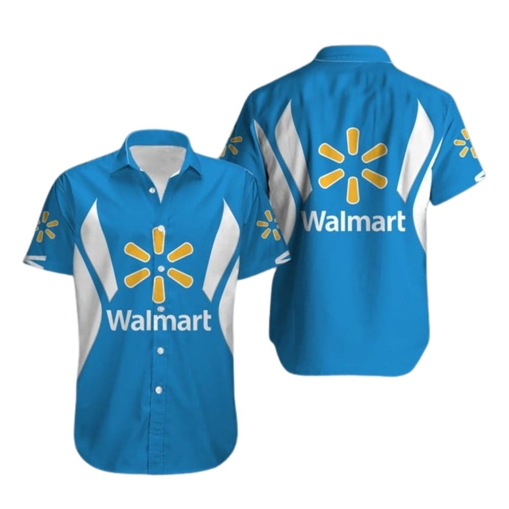 Add a touch of tropical flair to your wardrobe with this Walmart Logo White And Blue Hawaiian Shirt. Perfect for casual outings or beach days, this shirt is sure to turn heads.